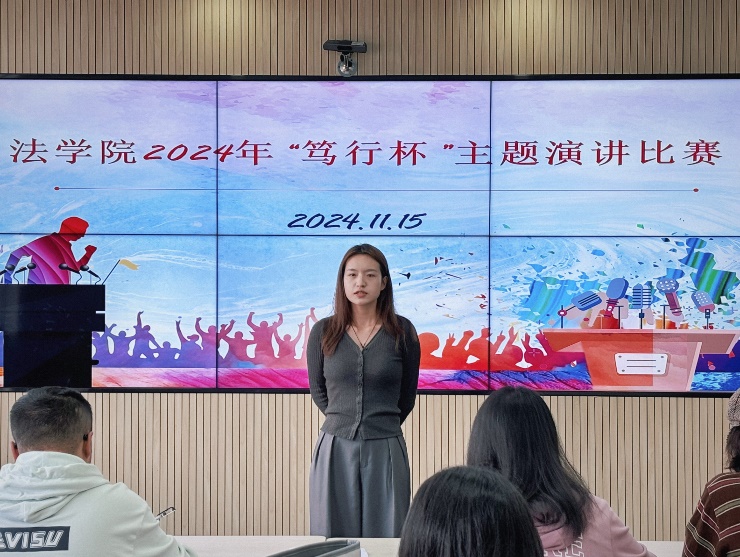 为深入学习习近平新时代中国特色社会主义思想,全面贯彻党的二十届三中全会精神,11月15日,滕博会9885官网第一届“笃行杯”演讲比赛在逸夫楼423顺利举办。法理学方向博士生朱奎、赵春艳等担任本次比赛评委。