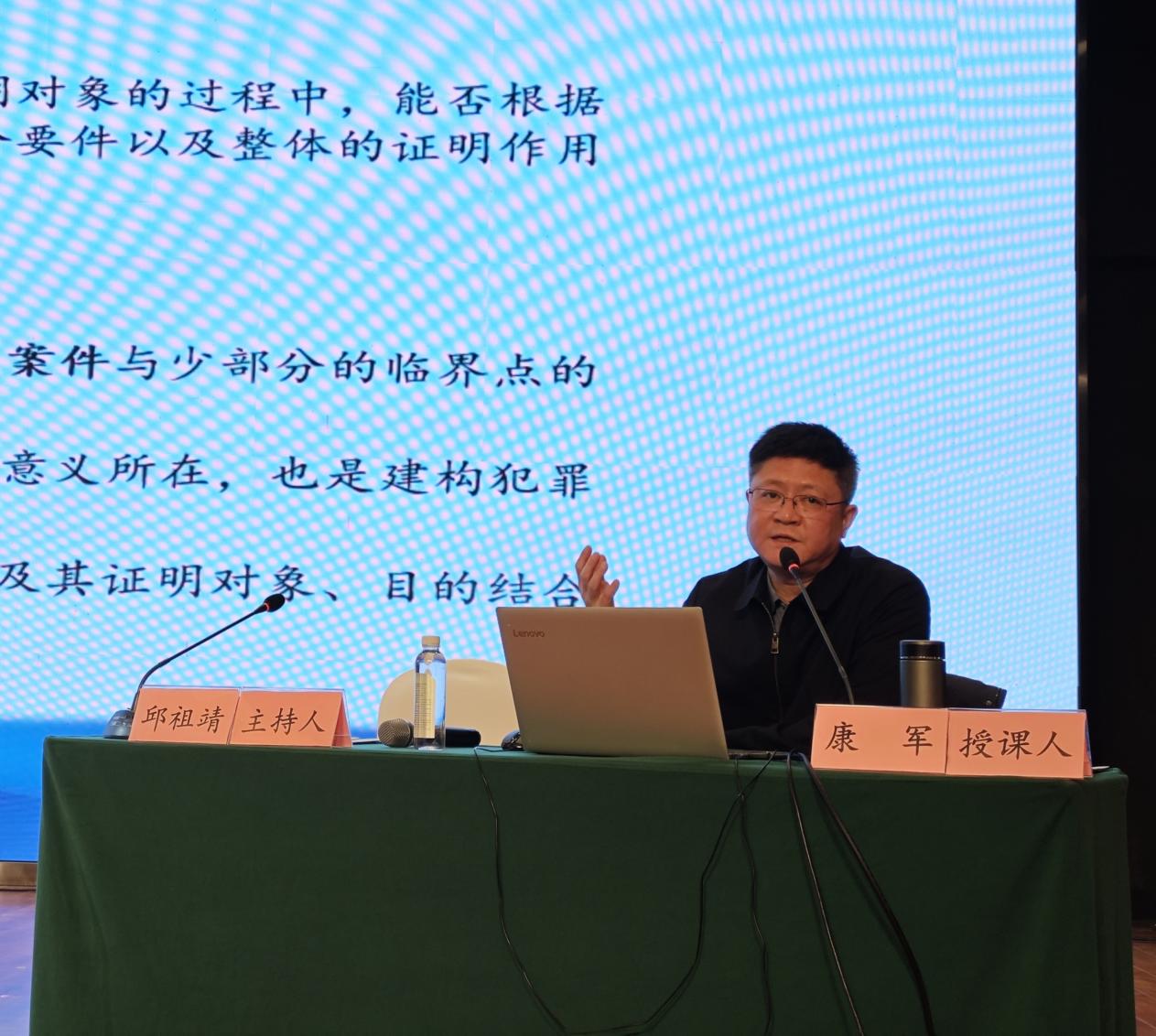 在讲座开展过程中,康军老师梳理了自党的十八大以来党中央有关刑事法治建设的重要决策部署和相关文件,深入分析了我国当前的刑事法治建设背景,并结合实务案例分析了犯罪构成与刑事证据的运行过程,讲解了犯罪构成的本质属性与功能、犯罪构成与刑事证据之间的关系,并强调以犯罪构成条件列示、语义阐释和路径导向三大功能为基础审查在案证据是罪刑法定原则下的必然要求,也是遏制处罚冲动并可以验证结论合理性的重要方法。