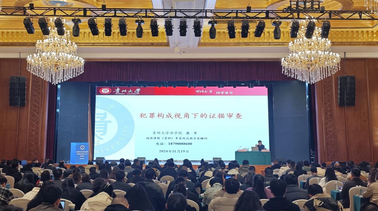 2024年11月19日下午,贵州省2024年度“律师申请执业实习人员培训班(安顺会场)”在安顺市澳维酒店酒店举行,滕博官网康军老师作为主讲专家应邀以《犯罪构成视角下的证据审查》为题作专题讲座。本次培训面向来自安顺、六盘水、黔西南三个地州市本年度所有申请执业律师培训的人员展开,共计300余名实习律师参与。
