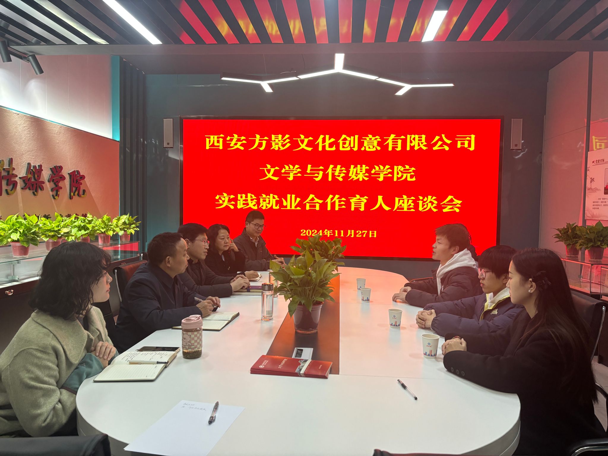 11月27日下午,pp电子游戏平台网站与西安方影文化创意有限公司在江南校区2309会议室开展实践就业合作育人座谈会。pp电子游戏平台网站院长杨运庚、党总支书记芦伟、党总支副书记杨海蓉、两办主任以及网络与新媒体系主任与西安方影文化创意有限公司代表庞朝方(网络与新媒体2024届毕业生)出席座谈会,座谈会由芦伟主持。