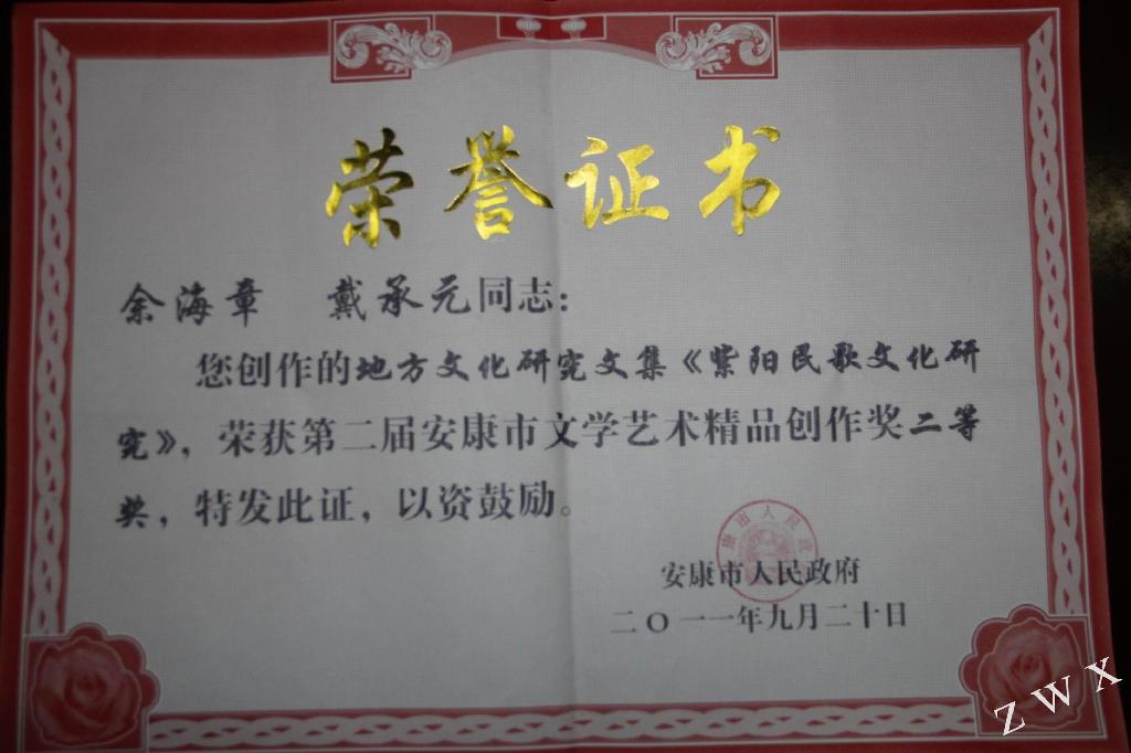 余海章、戴承元安康市文艺精品创作二等奖
