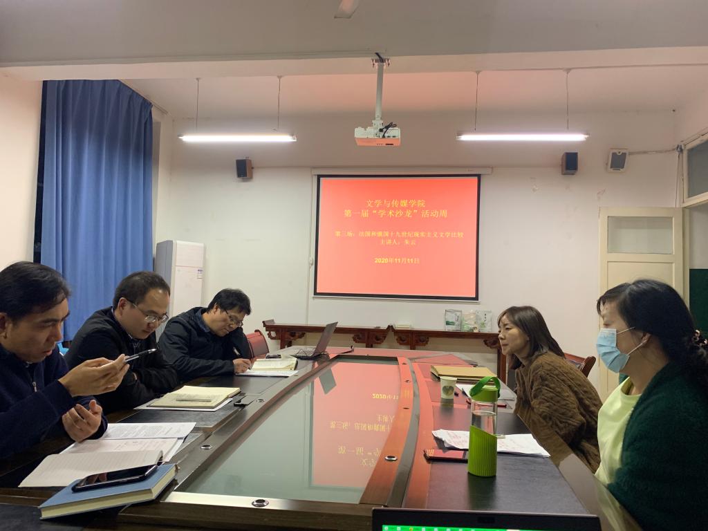 2020年11月12日晚7点半,pp电子游戏平台网站“文学理论与外国文学”学科组在2307会议室举办了第一届“学术沙龙”活动周第三次学术研讨活动。研讨主题是“法国和俄国十九世纪现实主义文学比较”,由副院长朱云主讲,全体文学理论与外国文学教师参加了研讨活动。