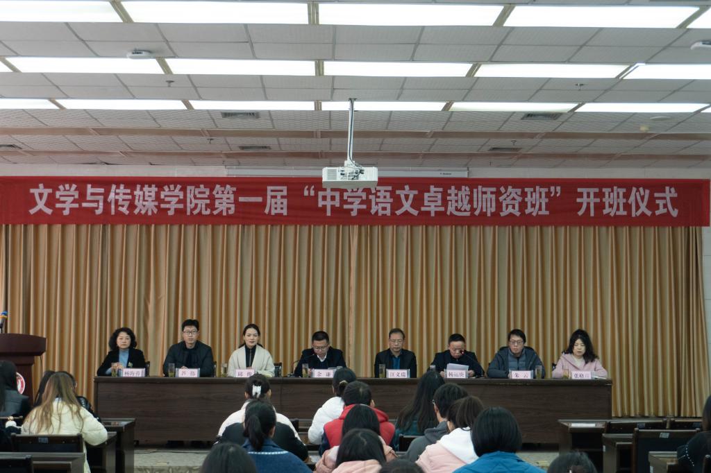 11月24日下午,pp电子游戏平台网站第一届“中学语文卓越师资班”开班仪式在图书馆六楼报告厅成功举行。副校长余谦、教务处处长汪义瑞、陕西省教学名师邱俊、pp电子游戏平台网站党政班子成员、班主任张格瑄出席了开班仪式,开班仪式由pp电子游戏平台网站副院长朱云主持。