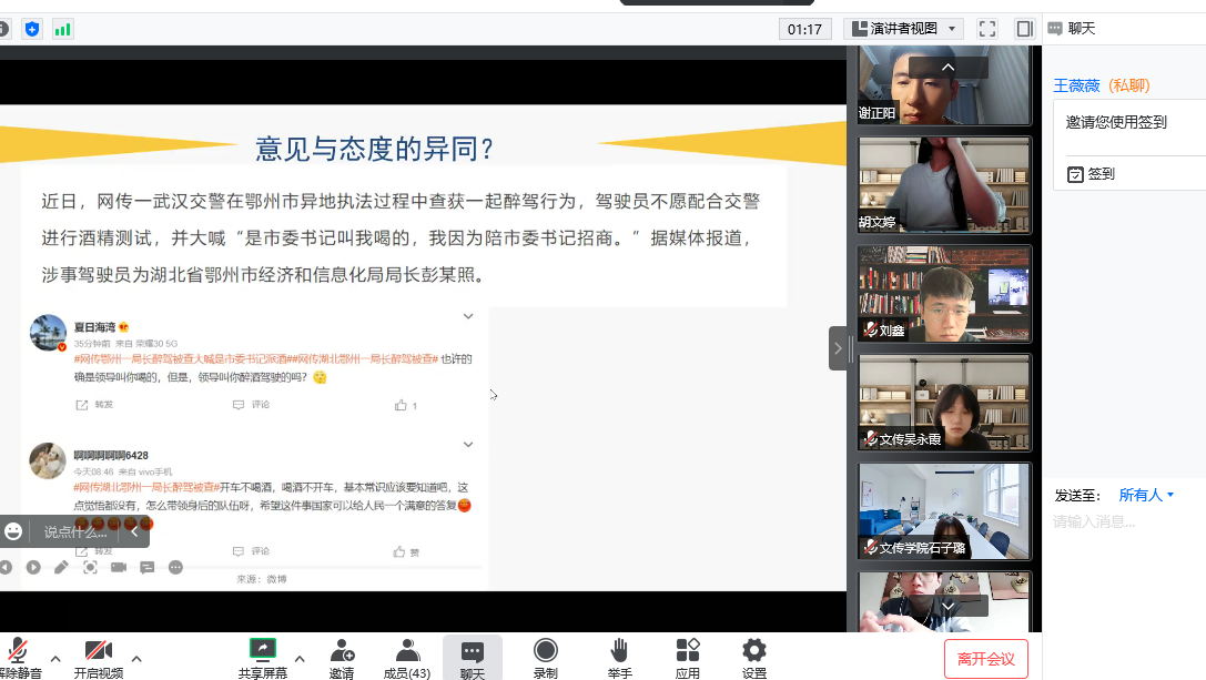 为进一步规范线上教学,文学与传媒学院根据《pp电子游戏平台网站关于推迟2022年秋季开学时间的通知》和学校教务处《关于2022-2023学年第1学期开学初教学工作安排的通知》要求,结合本院教学特点制定了《pp电子游戏平台网站2022-2023学年第1学期开学初线上教学方案》,并在新学期开学工作会议上对线上教学过程中教学媒介选用、教学内容设计、教学组织形式、教学纪律保障、教师仪态言语等进行了要求。为全面保障线上教学秩序正常运行,学院领导班子在线上教学期间执行轮班巡课制,教学督导、系主任同时开展线上巡课、听课等教学检查督导活动。