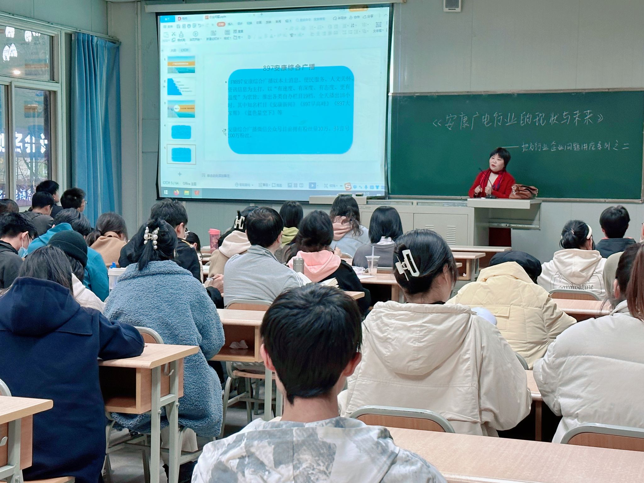 3月16日,秘书新媒体系邀请959交通广播新闻总监安康广播电视台监管部主任童慧为网络与新媒体专业、秘书学专业2020级学生讲授安康广电行业的现状与未来。