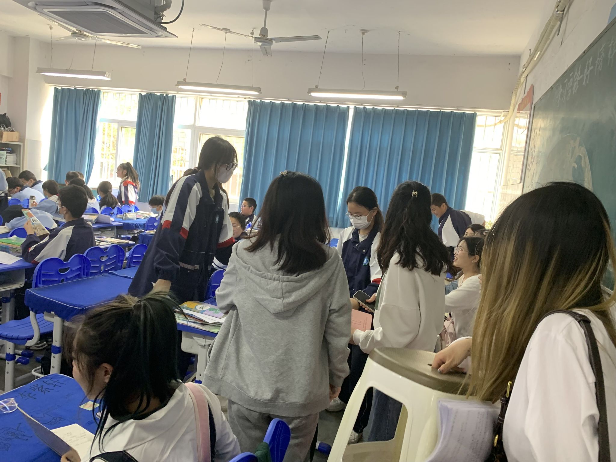 课堂教学观摩活动是大家最为期待的见习环节。根据小组划分名单,同学们分别进入七年级和八年级教室,切身感受了真实的语文课堂教学情境。本次课堂教学观摩,课型丰富,类别多样,既有常规课又有公开示范课,既有阅读教学又有写作教学,既有青年教师的展示又有教学名师的示范,大家纷纷感言受益良多,在真实的语文课堂遇见真实的语文。