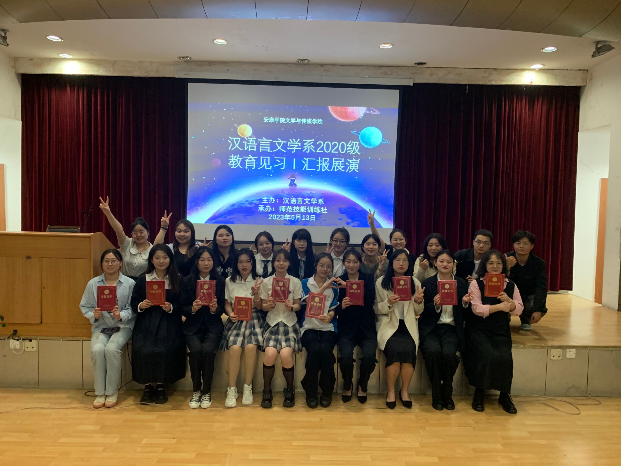 5月13日晚七点半,pp电子游戏平台网站在江南校区一号楼六楼报告厅举行汉语言文学专业2020级教育见习1汇报展演。本次见习汇报展演由学科教学论任课教师张格瑄指导,师范技能训练社承办,汉语言文学专业2020级全体学生参加。