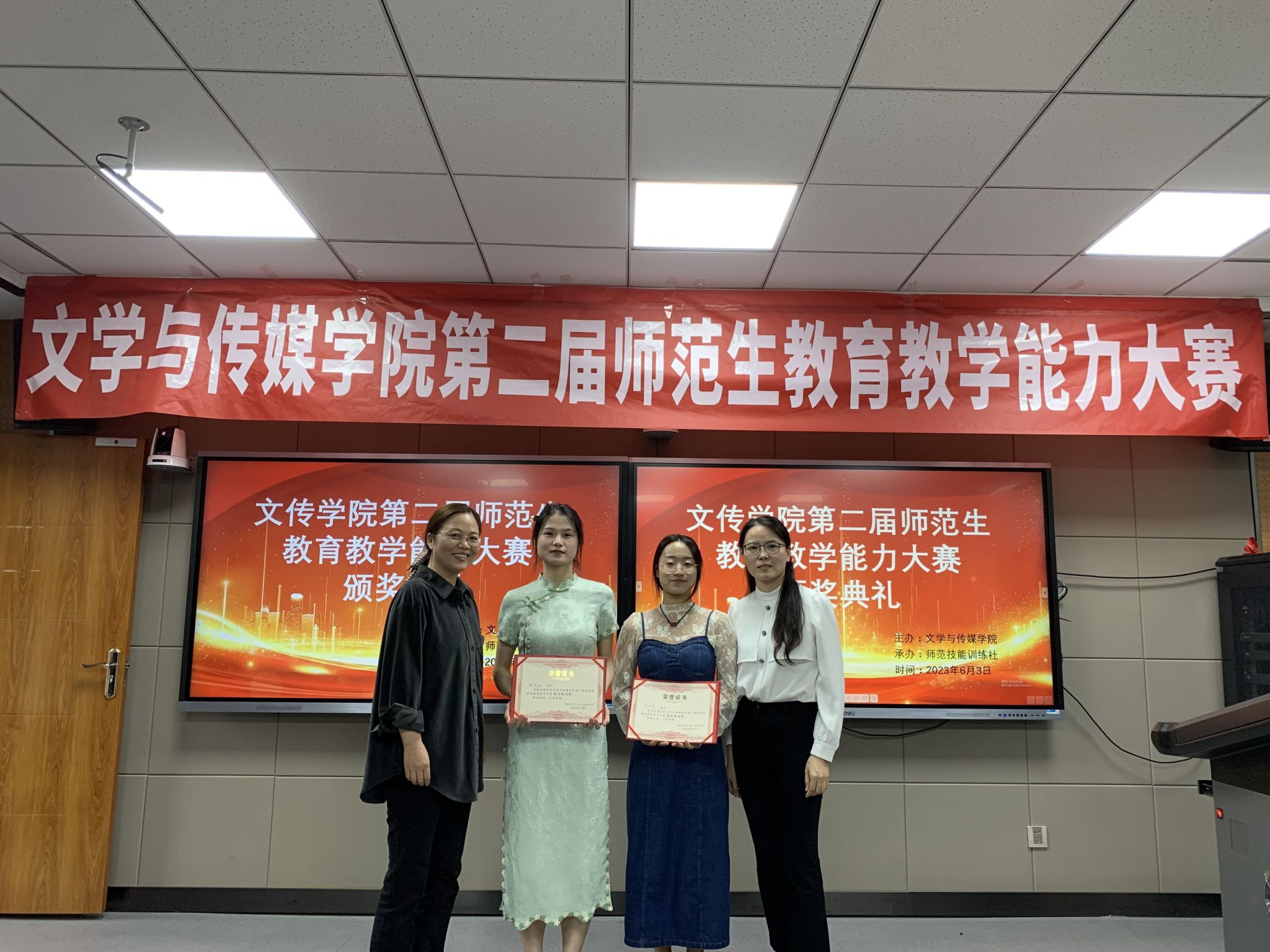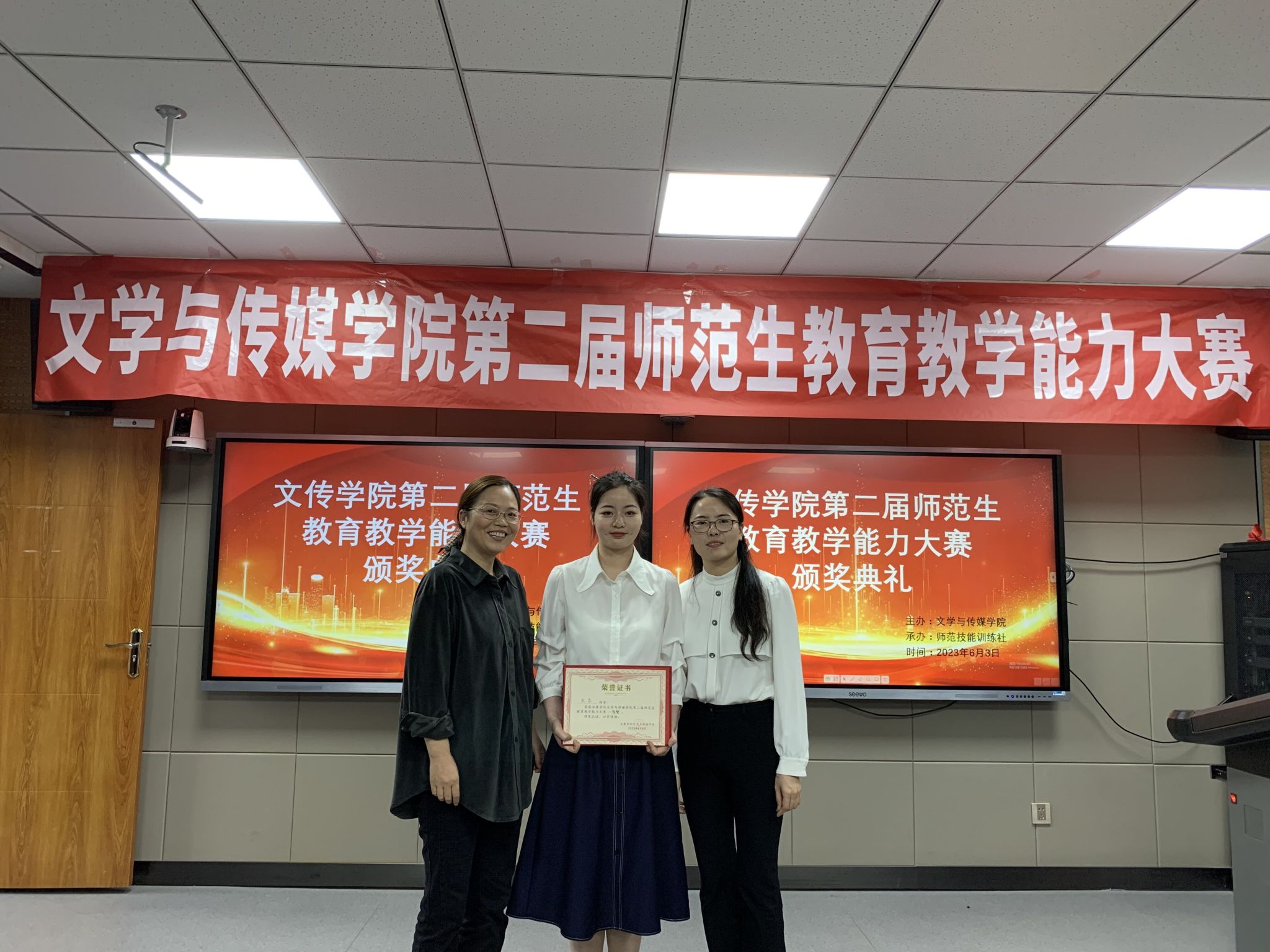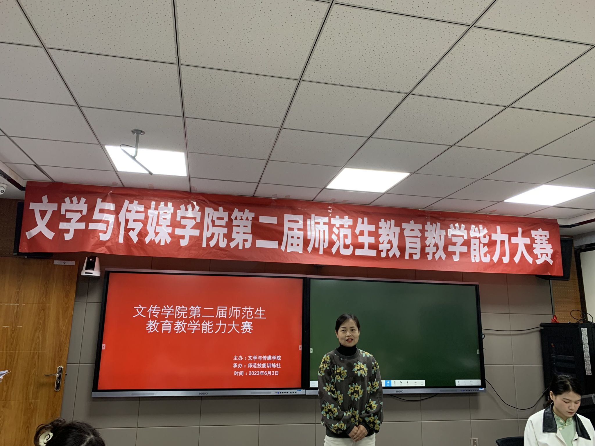 2023年6月2日至3日,由师范技能训练社承办的pp电子游戏平台网站第二届师范生教育教学能力大赛在我校师范生技能训练中心4204教室隆重举行。历经前期的初赛和复赛的选拔,本次共有15名选手成功入围。大赛邀请安康市汉滨初级中学陈岩、张美玲老师及汉语言文学系系主任韩文霞共同担任比赛评委,pp电子游戏平台网站党总支副书记杨海蓉、副院长李婷、语文学科教学论任课教师现场观摩。