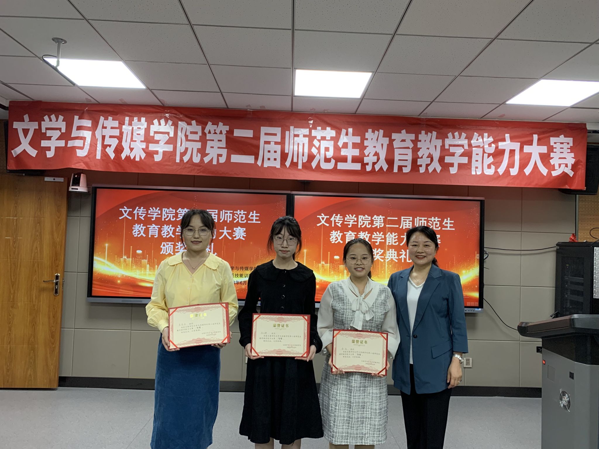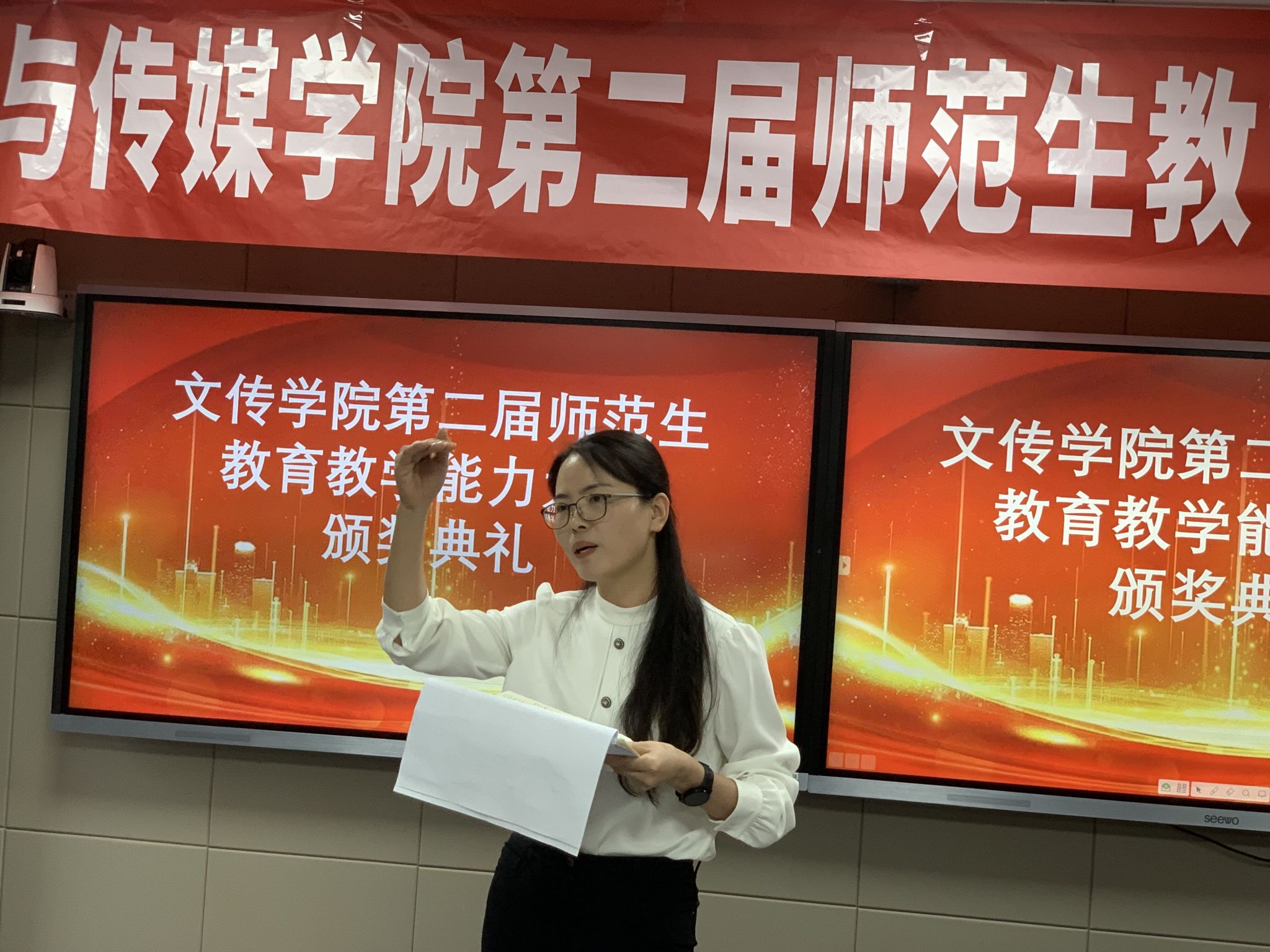 本次大赛共产生一等奖一名,二等奖三名,三等奖五名,优秀奖六名,单项奖两名。韩文霞宣读了比赛结果,学院领导和评委分别为获奖选手颁奖。