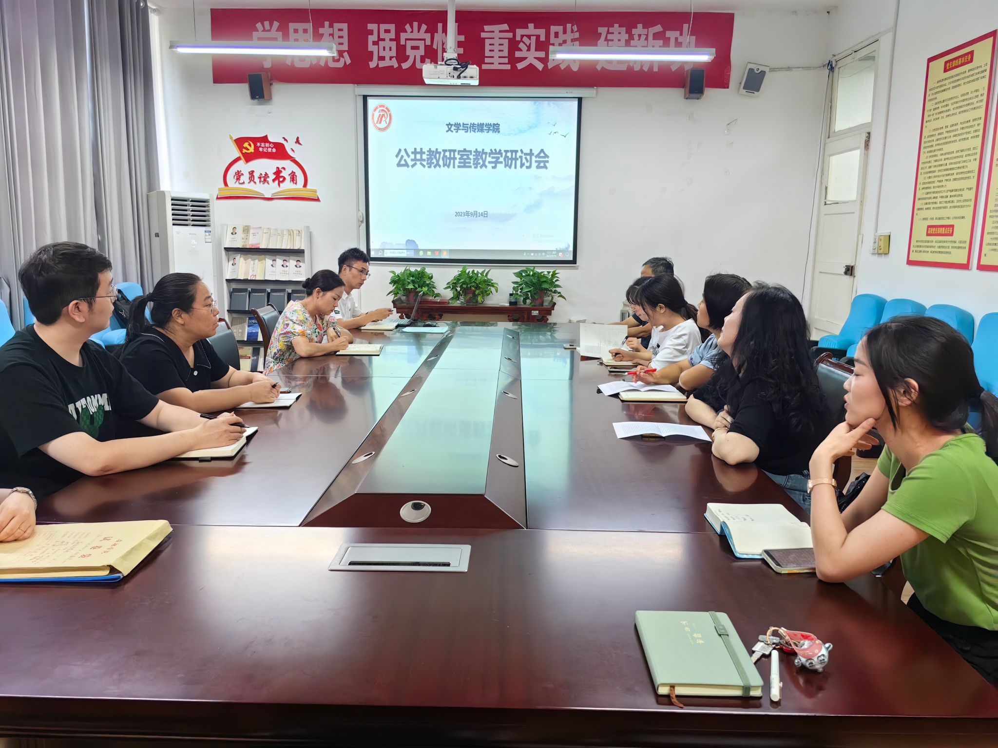 9月14日下午,pp电子游戏平台网站公共教研室在江南校区2307会议室召开新学期教学工作会议暨“应用文写作”课程教改沙龙。会议由公共教研室主任黄治强主持,承担公共课程教学任务以及新闻写作方向教师参与会议,教学副院长李婷出席会议并对相关工作进行指导。