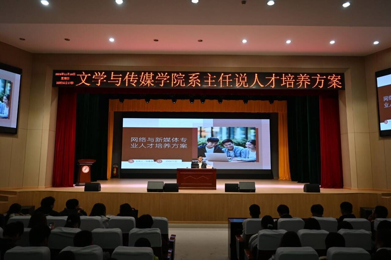 汉语言文学系主任谭诗民、秘书学专业负责人胡少山、秘书与新媒体系主任张建涛,分别面向汉语言文学、秘书学、网络与新媒体专业全体学生开展了“对学生说人才培养方案”活动。三位老师围绕本专业人才培养目标、毕业要求、课程体系和课程设置、第二课堂课表等向学生进行了全面解读。