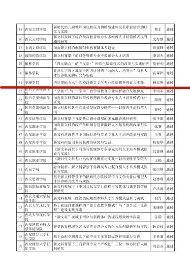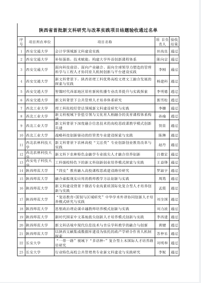 10月28日,陕西省教育厅办公室发布了《关于公布首批新文科研究与改革实践项目结题验收结果的通知》(陕教高办〔2025〕28号),pp电子游戏平台网站杨运庚、朱云、谭诗民、李婷、崔瑜等团队成员共同完成的“应用型地方本科高校汉语言文学专业改造提升探索与实践”项目顺利通过结题验收。
