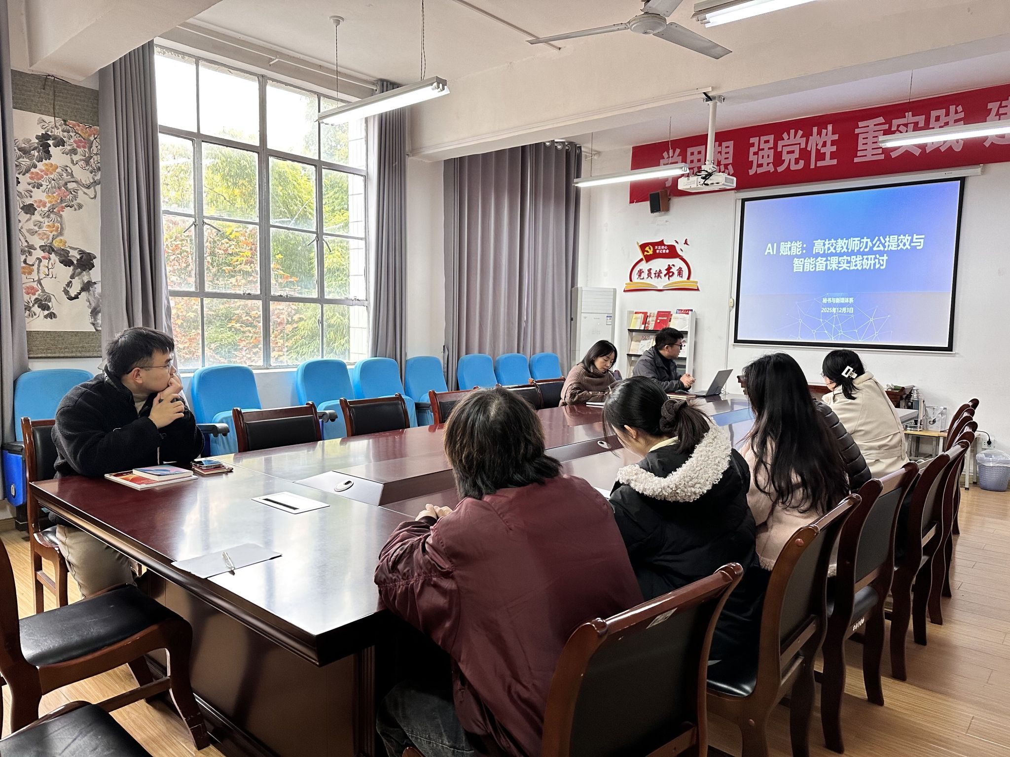 为积极响应学院教育数字化转型号召,推动人工智能技术与教育教学的深度融合,12月3日下午,秘书与新媒体系在2307召开了AI赋能教学新路径主题教研活动。本次活动由系主任邸玲主持,秘书与新媒体系全体教师参会,活动围绕“AI赋能教师办公及备课实践”展开了深入交流与探讨。