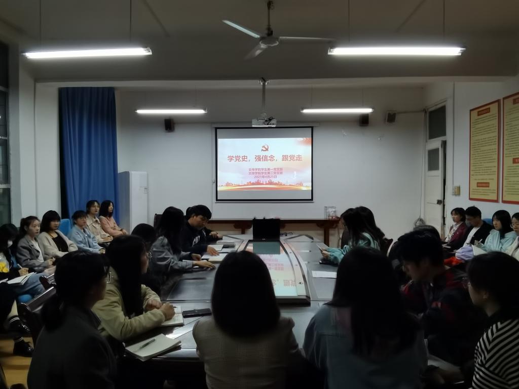 百年征程波澜壮阔,百年初心历久弥坚。2021年是中国共产党成立100周年,为认真贯彻习近平总书记在党史学习教育动员大会上的重要讲话精神,引领广大党员深入学习党的历史,做到学史明理、学史增信、学史崇德、学史力行。2021年4月25日晚上7:00,pp电子游戏平台网站学生第一、第二党支部在2号教学楼2307教室联合开展了“学党史、强信念、跟党走”主题党日活动。学生第一、第二党支部全体党员参加了本次活动。活动由学生第一党支部书记彭潇主持。