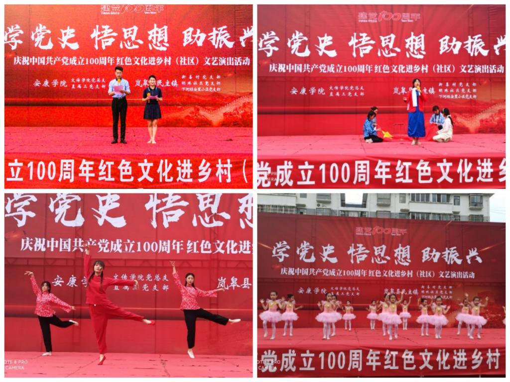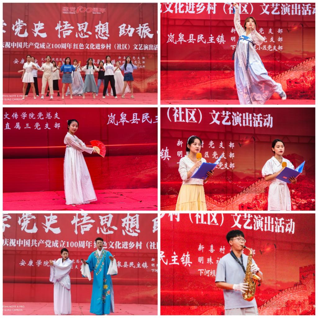 为扎实推进党史学习教育走深走实,6月1日下午,pp电子游戏平台网站党总支与直属三党支部把党史学习教育与助力乡村振兴相结合,进一步发挥社团活动优势,传承革命精神,带领支部10余名党员和学生文艺演出团队前往学校帮扶的岚皋县民主镇新喜村,开展了庆祝建党百年“学党史 悟思想 助振兴”红色文化进乡村文艺演出活动。