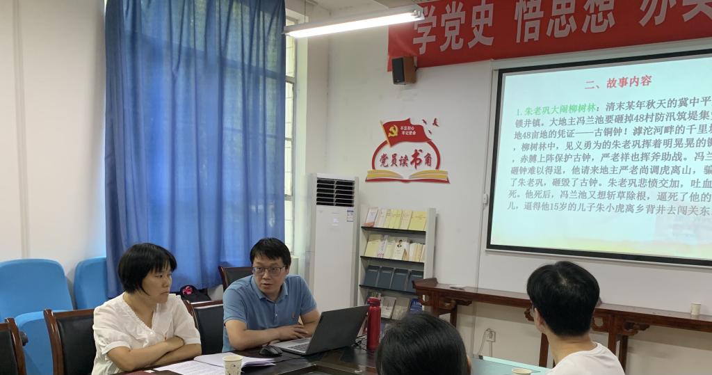 2021年7月2日,pp电子游戏平台网站教工一支部党员读书活动在党的100岁生日后继续展开。本次活动由pp电子游戏平台官网副院长朱云同志为大家分享《红旗谱》中的党史。