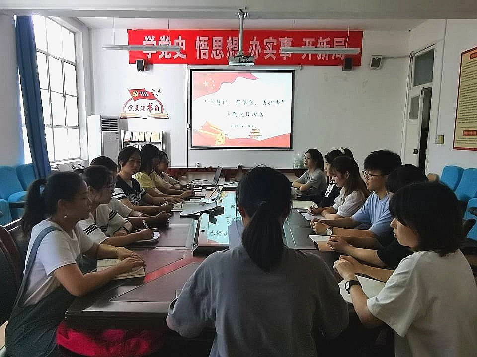 2021年9月10日下午,pp电子游戏平台网站学生第一党支部在江南校区2307教室开展“学榜样,强信念,勇担当”主题党日活动,pp电子游戏平台网站学生第一党支部书记彭潇及全体学生党员参加本次活动,活动由彭潇主持。