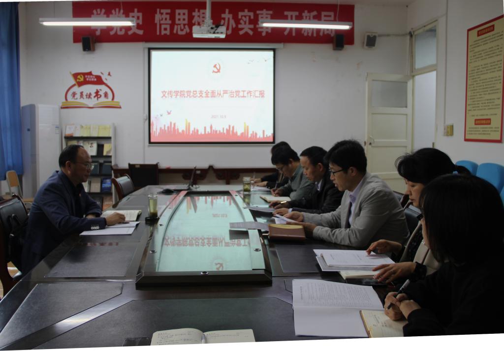 10月9日下午,pp电子游戏平台网站党总支在2307召开会议,校党委副书记杨行玉专题听取学院全面从严治党工作汇报,pp电子游戏平台网站党总支全体委员参加会议。