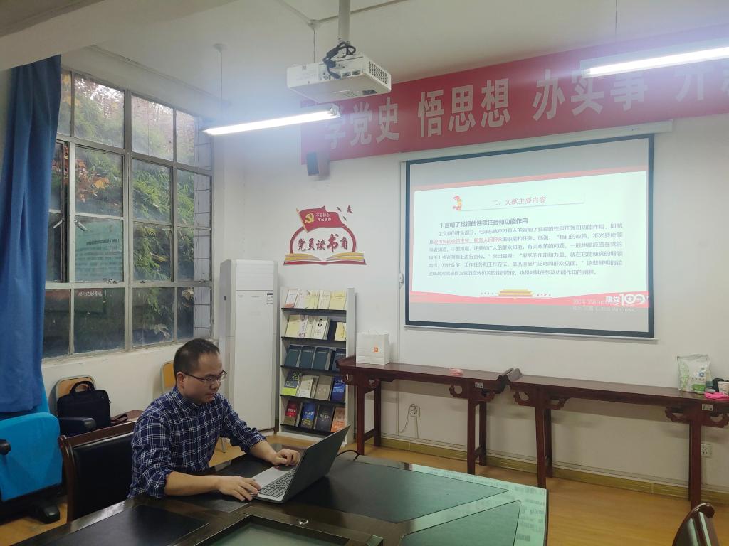 6月15日,pp电子游戏平台网站教工第二党支部在2307会议室开展了“中国共产党新闻思想史学习”读书活动。活动由支部书记谭诗民主持,支部全体党员参加了读书活动。本次读书活动主讲人为谭诗民,阅读篇目为毛泽东《对<晋绥日报>编辑人员的谈话(一九四八年四月二日)》。