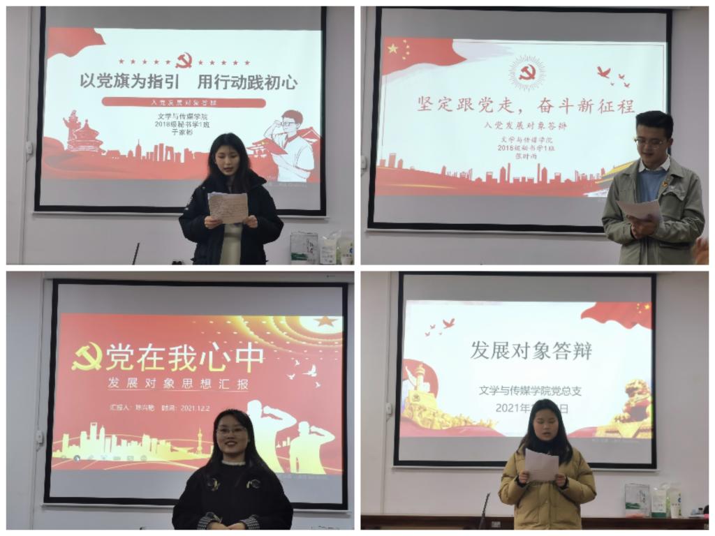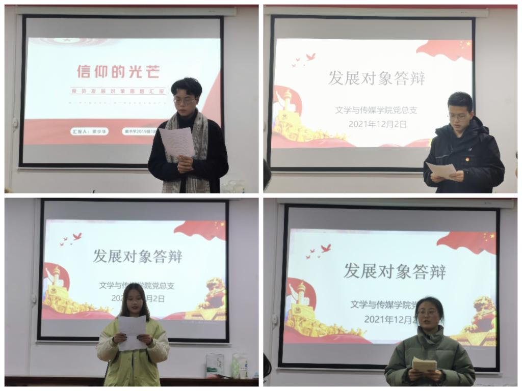 2021年12月2日16:00,pp电子游戏平台网站学生党支部在2307会议室组织开展了pp电子游戏平台网站2021年下半年发展对象述职答辩会,党总支副书记杨海蓉、学生第一党支部书记彭潇、学生第二党支部书记薛涛、辅导员邹棠华、学生支部委员及25名发展对象加本次答辩会。会议由薛涛主持。