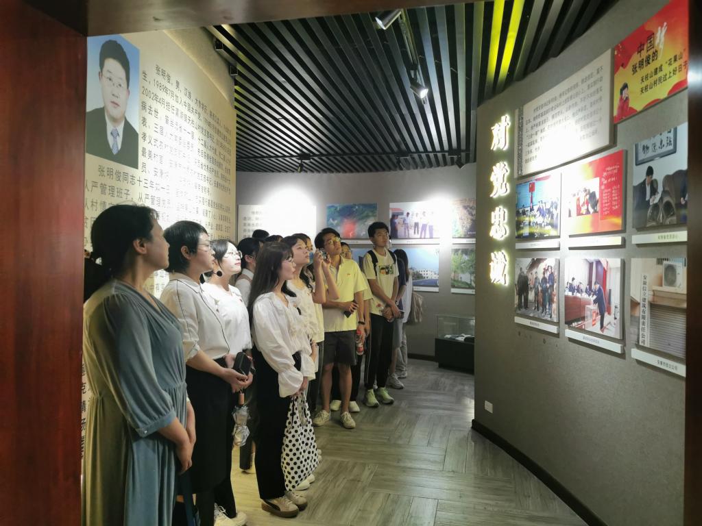 在天柱山村党支部书记梁莎莎的讲解带领下,师生党员和积极分子参观张明俊同志先进事迹展室,认真聆听了张明俊同志的感人事迹,瞻仰了他生前工作和生活资料,观看了《好支书张明俊》专题片,全方位走进这位优秀共产党员、全国劳动模范的精神世界,接受党性教育的洗礼,在场的同志无一不被张明俊同志博大的胸怀和崇高的精神所打动,很多同志不禁热泪盈眶。