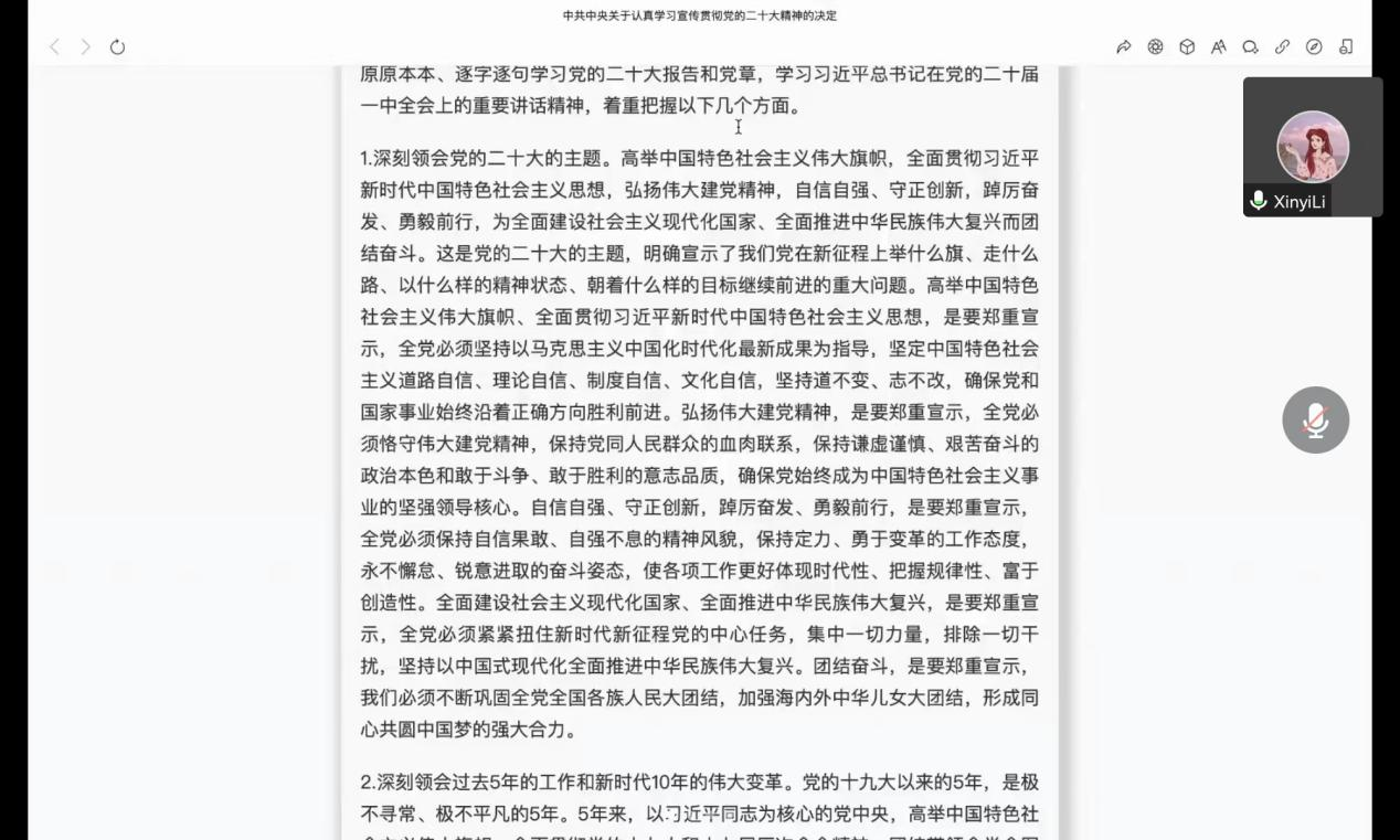 12月5日,pp电子游戏平台网站学生第一党支部召开线上政治理论学习会,会议学习传达《中共中央关于认真学习宣传贯彻党的二十大精神的决定》精神,pp电子游戏平台网站学生第一党支部全体党员参加会议。会议由第一党支部书记李欣逸主持。