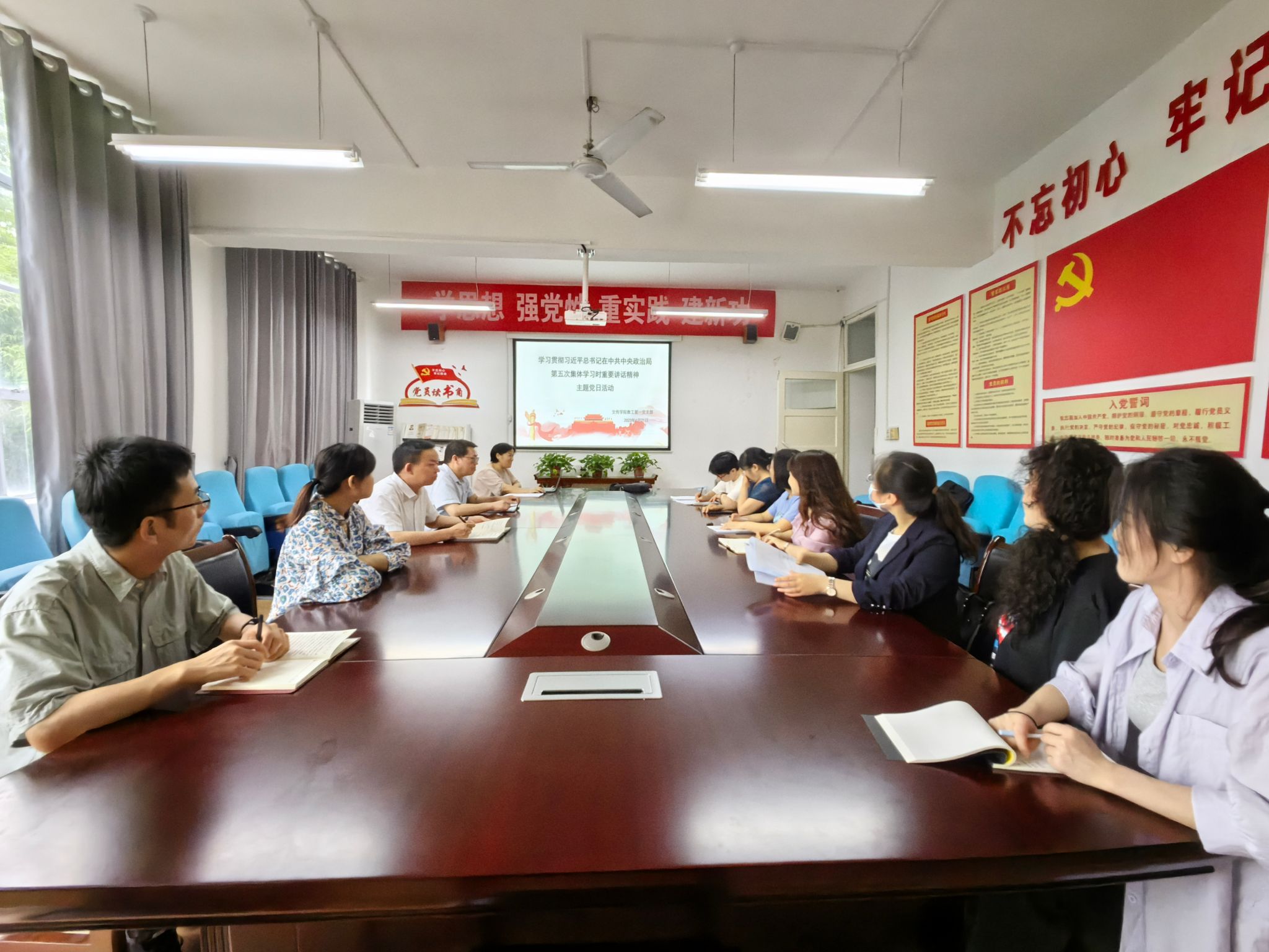6月21日下午,pp电子游戏平台网站教工第一党支部在2307室开展了主题党日活动,活动主题是“学习习近平总书记讲话精神,做合格人民教师”。活动由支部书记韩文霞主持,支部全体党员参加了主题党日活动。