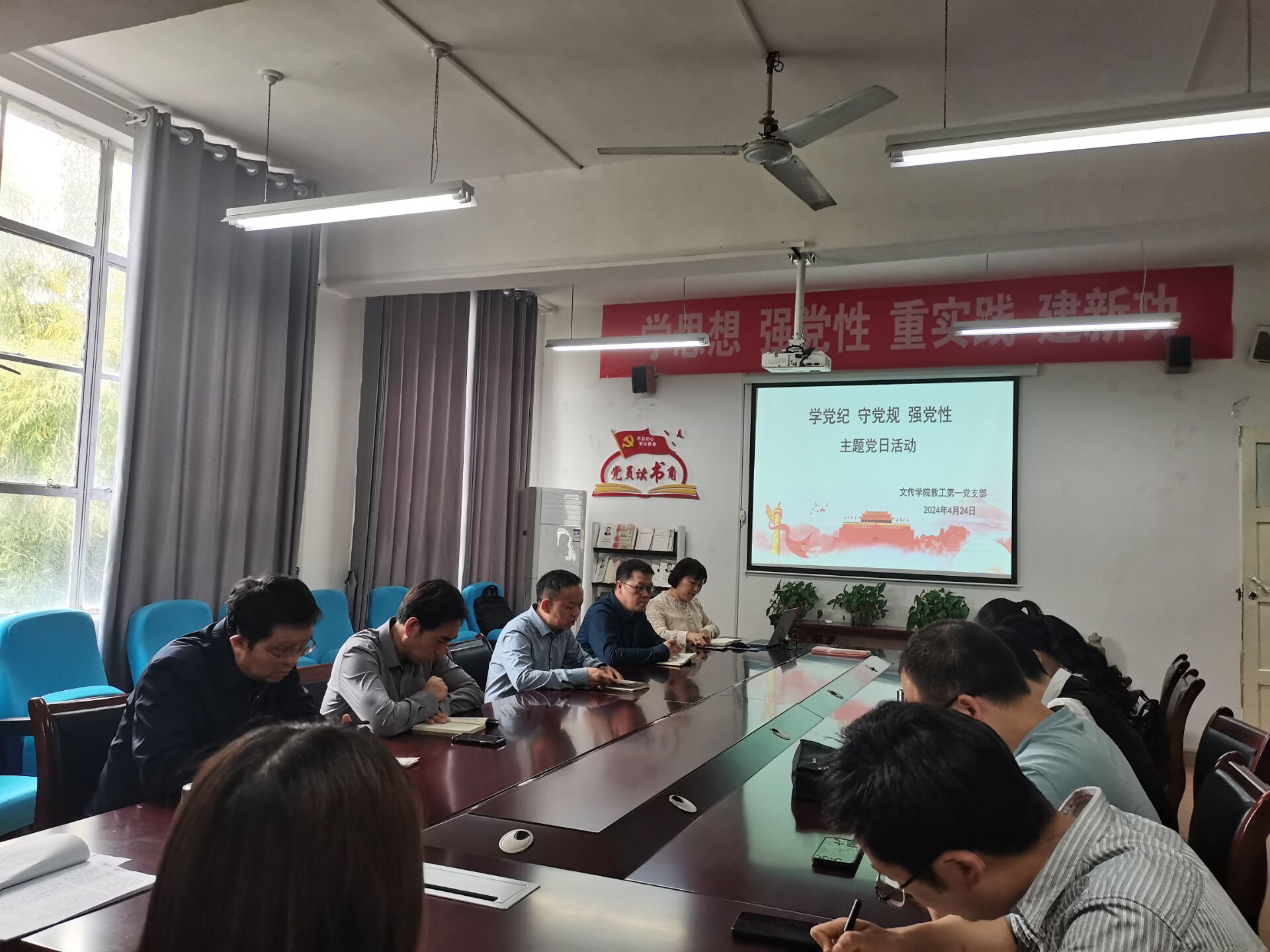 为深入贯彻落实全面从严治党要求,进一步提高党员遵规守纪的自觉性,以党纪学习教育强基固本,推动党员教师的思想自觉和行动自觉,做到内化于心、外化于行,4月24午,pp电子游戏平台网站教工第一支部组织全体党员开展“学党纪、守党规、强党性”四月主题党日活动活动在2307会议室举行,由支部书记韩文霞主持。