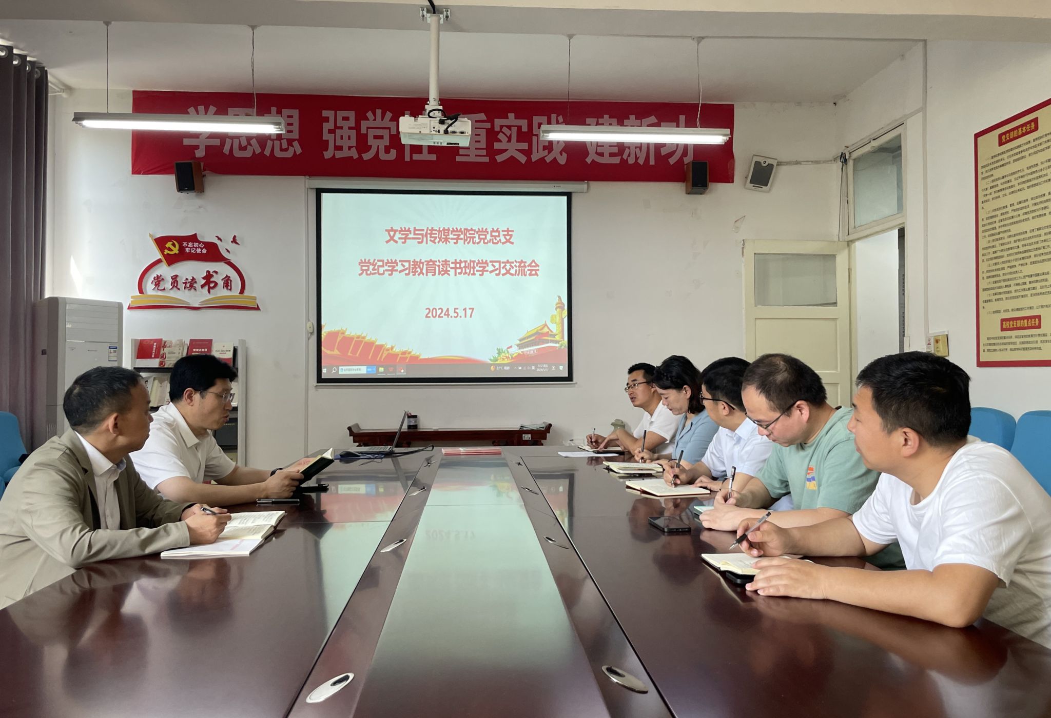 5月17日上午,pp电子游戏平台网站党总支在2307会议室召开党纪学习教育读书班学习交流会,pp电子游戏平台网站领导班子成员、理论学习中心组成员参加学习会议,会议由党总支书记芦伟主持。