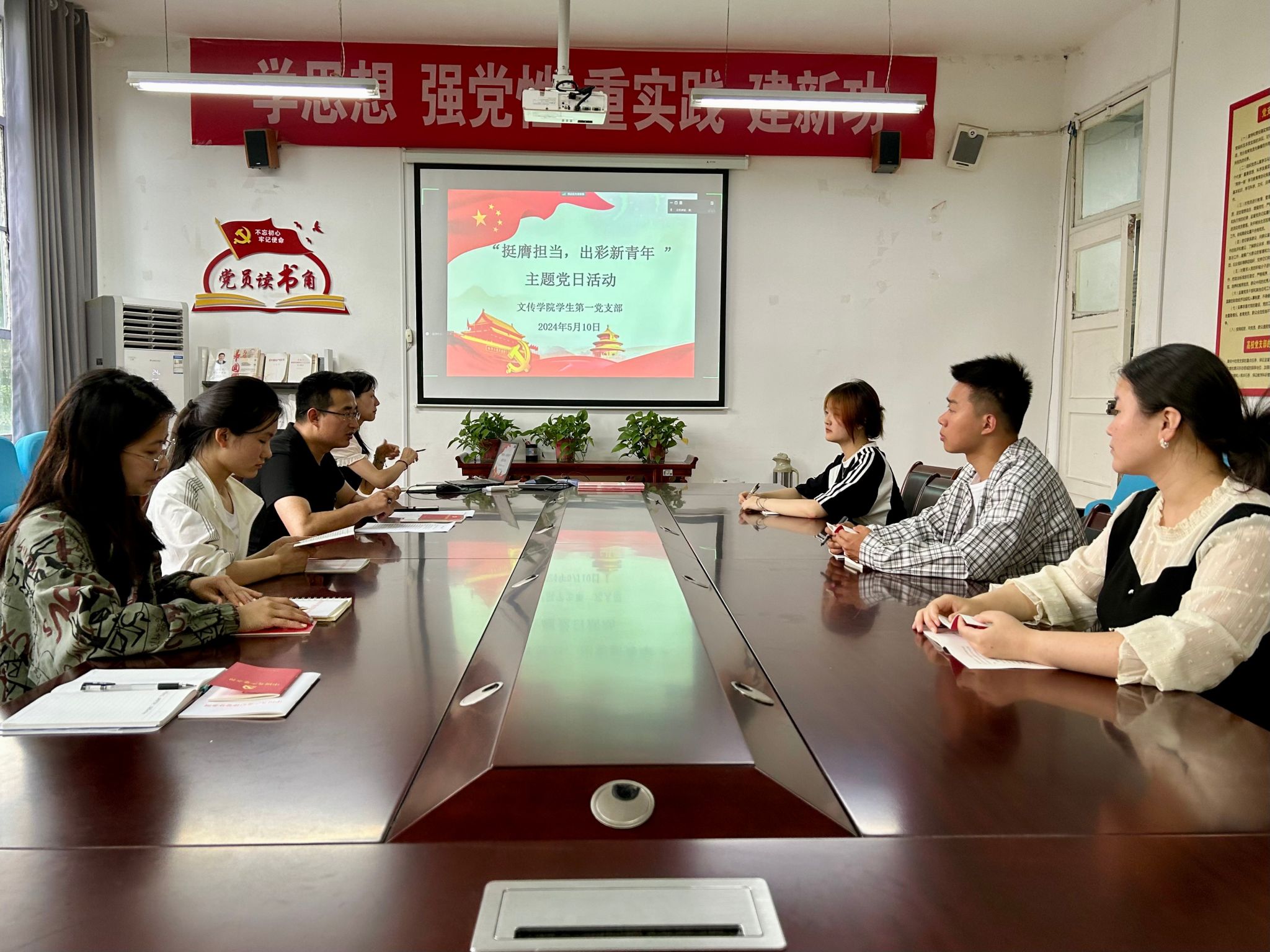 为了大力弘扬五四精神,2024年5月10日下午,pp电子游戏平台网站学生第一党支部在2307会议室开展了“挺膺担当,出彩新青年”主题党日活动。支部全体党员参加本次活动,活动由党支部书记许明主持。