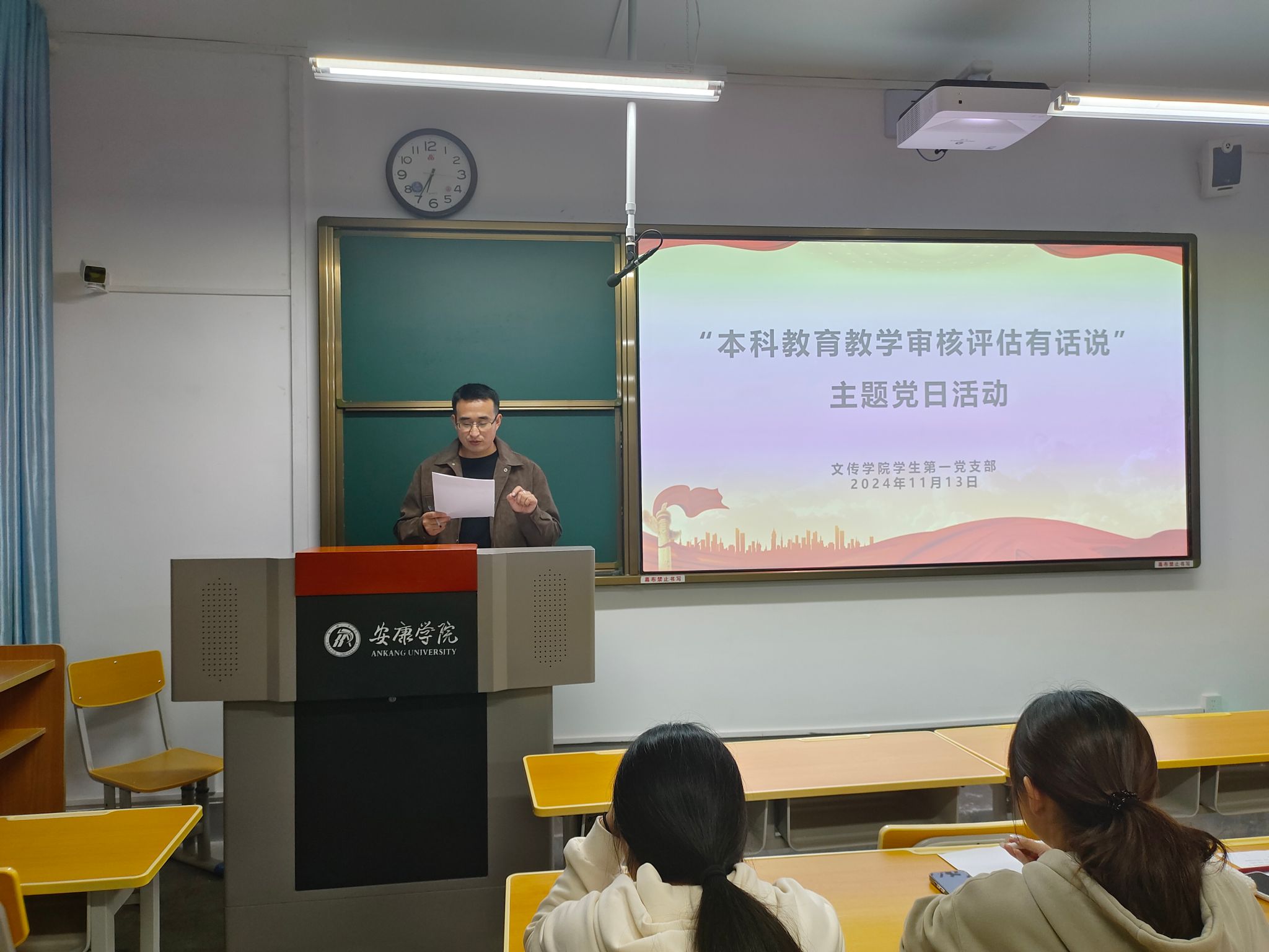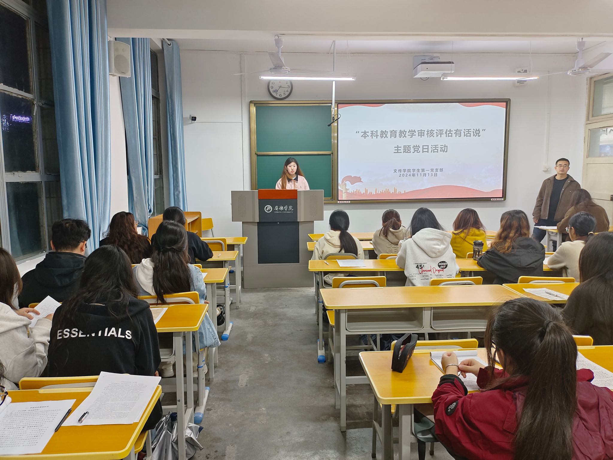 2024年11月13日,pp电子游戏平台网站学生第一党支部在2403教室召开了主题为“审核评估有话说”的党日活动,此次活动旨在深入落实本科教育教学审核评估的相关精神,深化全体党员、发展对象和积极分子对学校审核评估相关知识的学习。支部全体成员参加了本次活动,活动由党支部书记许明主持。