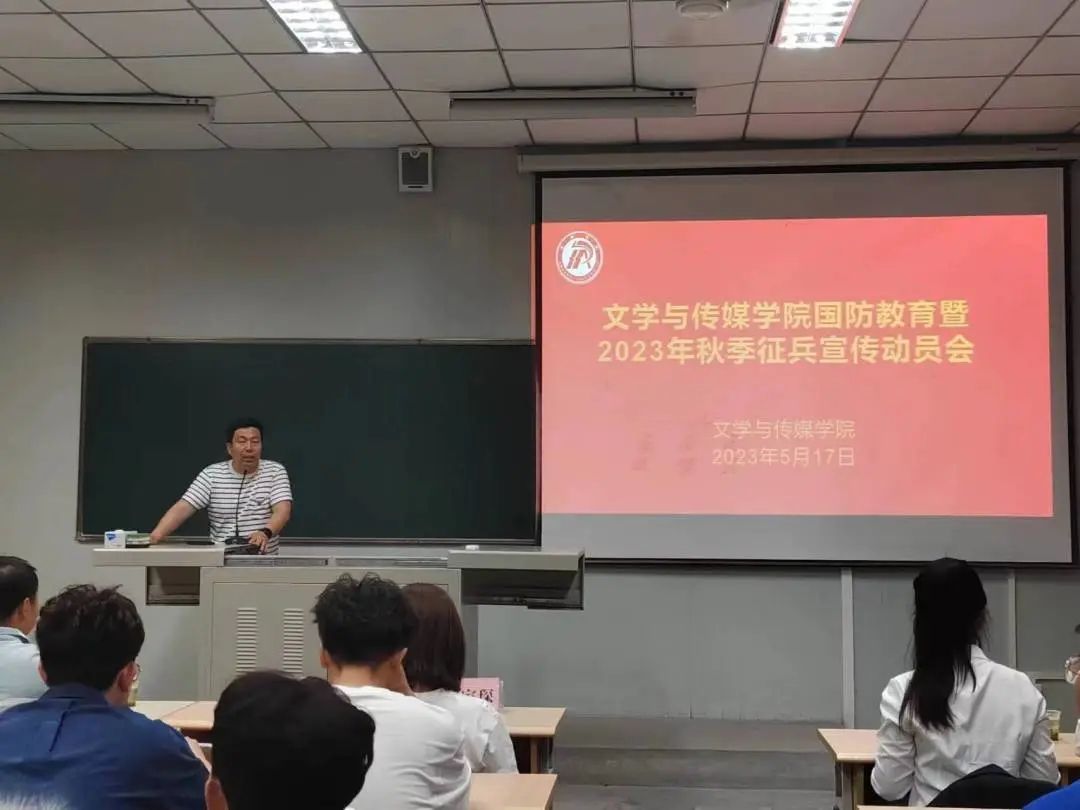 为深入贯彻二十大精神,加强学生国防安全教育,厚植青年学子爱国主义情怀,落实习近平强军思想,鼓励适龄青年积极响应国家号召投身军营报效祖国,文传学院联合学工部于5月17日晚上19点在江南校区十号教学楼1027教室组织开展国防教育暨2023年征兵动员会。学工部征兵工作负责人罗从政、pp电子游戏平台网站学工办副主任薛涛,退伍大学生戴家琛、严庆及pp电子游戏平台官网2020级全体男生参加本次动员会。会议由薛涛主持。