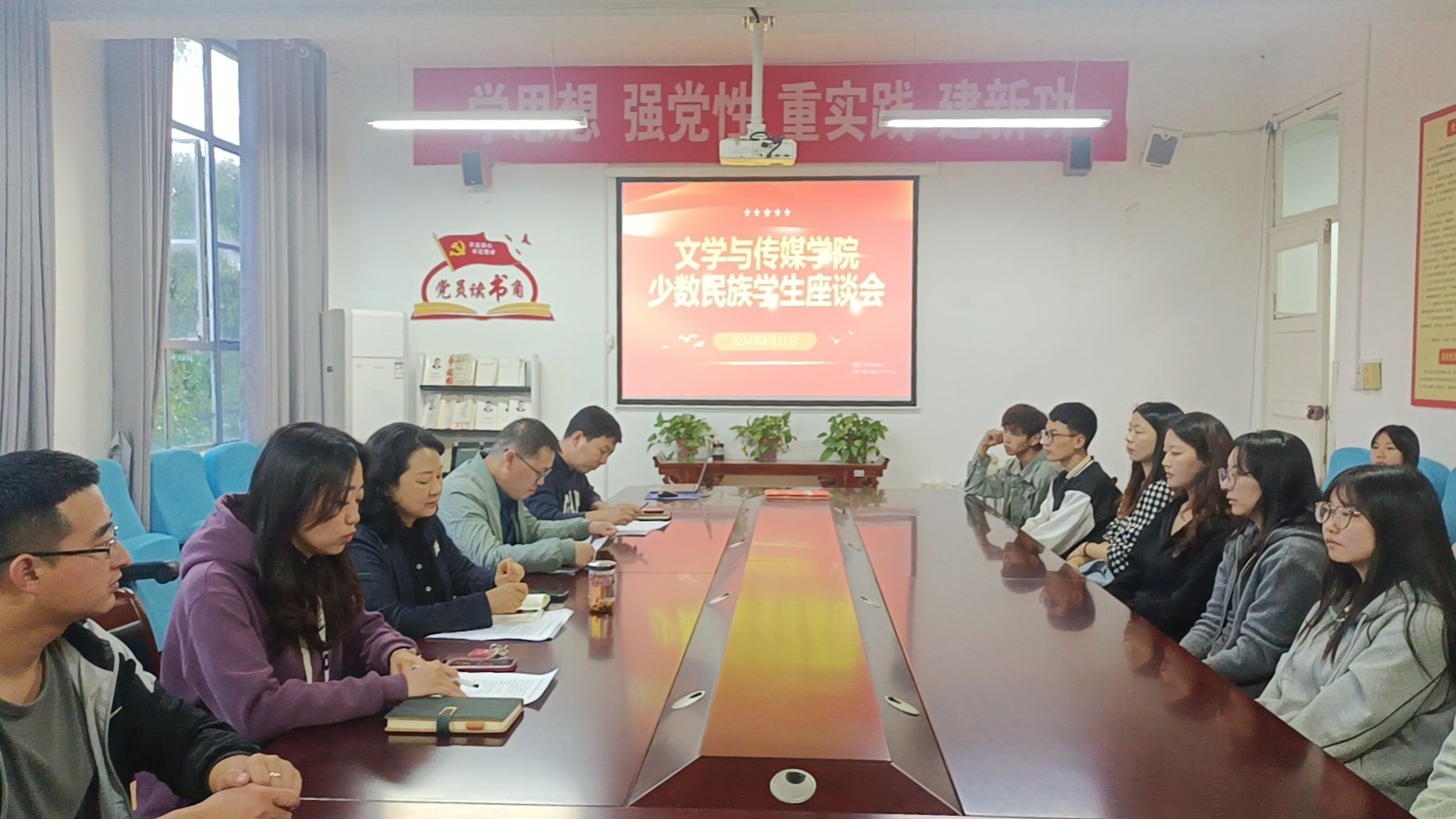 为深入学习贯彻习近平总书记关于加强和改进民族工作的重要思想,铸牢中华民族共同体意识,深化新时代高校民族团结进步教育,4月11日晚7点,pp电子游戏平台网站于2307会议室召开2024年春季学期少数民族学生座谈会。文传学院党总支副书记杨海蓉,党总支统战委员、副院长朱云,学工办主任薛涛、团总支书记彭潇、辅导员许明及近20名少数民族学生参加座谈会。座谈会由彭潇主持。