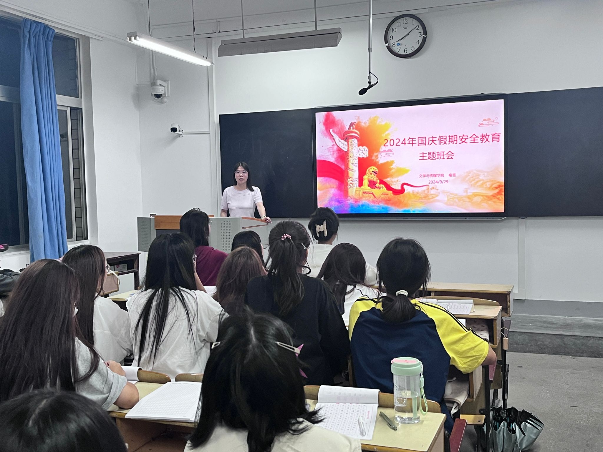 为弘扬爱国主义精神,增强学生的民族自豪感和国家安全意识,pp电子游戏平台网站9月30日组织开展了爱国主义教育暨国庆节安全注意事项主题班会。