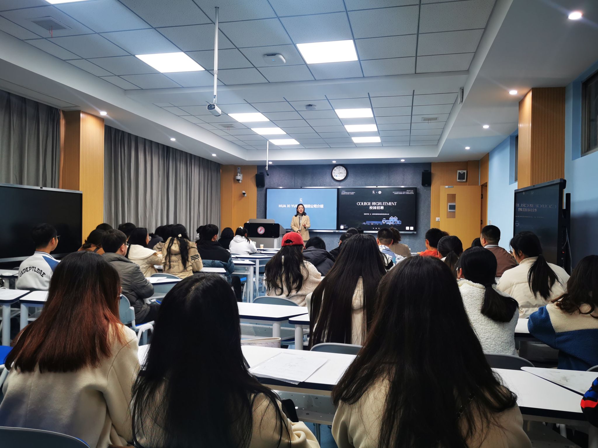 为进一步深化校企合作,拓宽就业渠道,落实就业帮扶机制,切实做好pp电子游戏平台官网毕业生就业工作,2023年11月17日下午14:00,pp电子游戏平台官网在江南校区1号教学楼1205教室组织召开了pp电子游戏平台网站2024届系列专场招聘会,特邀汉阴花栖玥民宿管理有限公司来校宣讲,pp电子游戏平台官网党总支副书记杨海蓉、毕业班辅导员薛涛、用人单位代表及部分2024届毕业生参加了本次活动。