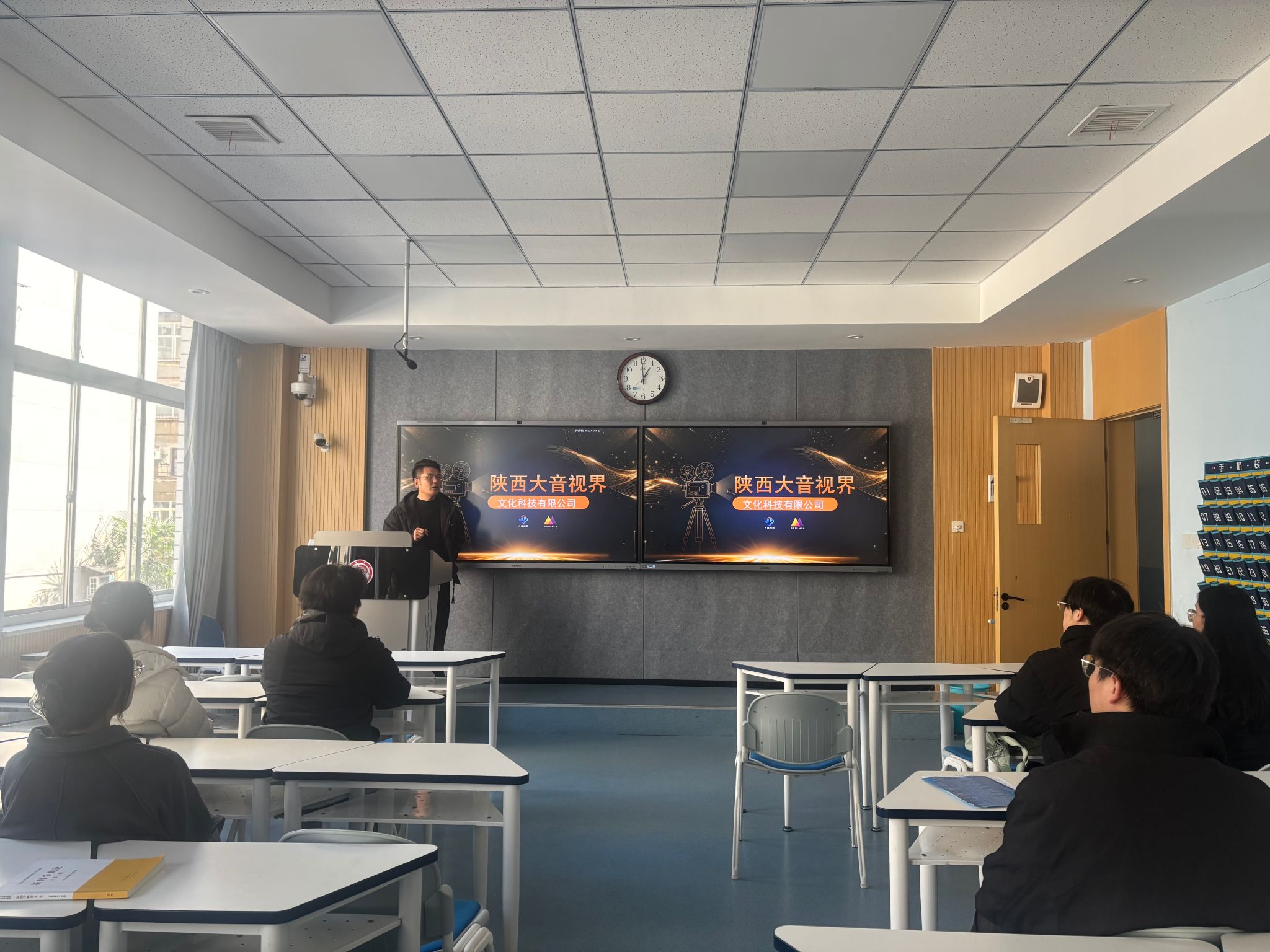 2025年11月21日,陕西大音文化科技有限公司来pp电子游戏平台官网开展2026届毕业生校园招聘宣讲会。pp电子游戏平台官网积极组织2026届毕业班学生参加,宣讲会由学院就业创业办公室主任薛涛主持。