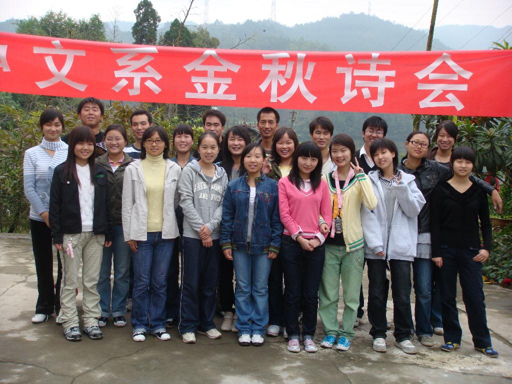为了加强课外教学实践活动,促进学生热爱自然、感悟生活、提高文学审美能力。十月十八日,在我系团总支的组织下,辅导员邹棠华老师和中文系二十名学生来到九里湾村举办了第三届金秋诗会。