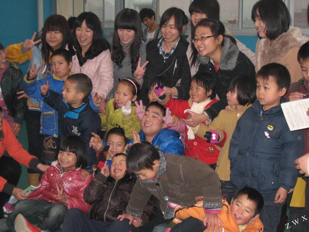 阳光学校里面的老师为此次前去的大学生们安排了一项有意义的活动,就是让每个大学生都能领一个孩子,然后学着和这些孩子交流、沟通。比较顺畅地和这些聋哑儿童交流是大问题,所以同学们提议老师教一些简单的手语以便于与孩子交流。于是手语课堂教育就开始了,同学们学着,孩子们看着,每一个手势都是一份浓浓的爱。大家终于感受到了做父母的难处了…