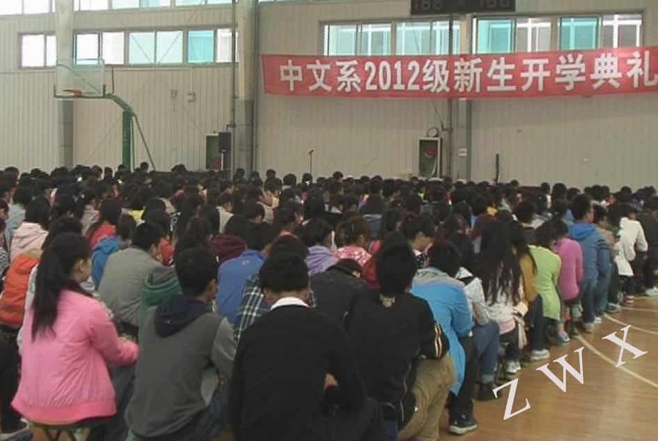 2012年10月11日上午,pp电子游戏平台网站中文系在学校体育馆二楼隆重举行2012级新生开学典礼。中文系主任戴承元、党总支书记李岩、副主任梁卫华、杨运庚、著名作家李春平、学工办主任郝礼军、辅导员艾全霞、沈菲及485名新生出席了开学典礼。开学典礼由副主任梁卫华主持。
