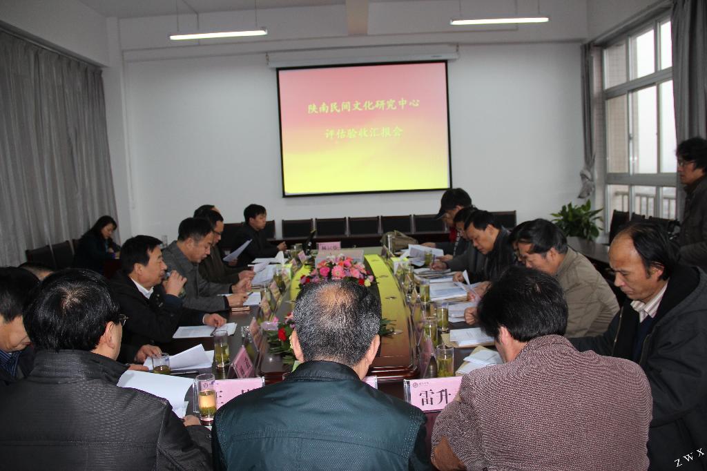 2012年11月28日下午,教育厅科技处甘世平处长、李梦泽调研员带队,由西安财经学院副院长周作斌教授任组长、西北大学徐卫民教授、陕西师范大学张志春教授、西北大学杨乐生教授、西安文理学院陈正奇教授组成的专家组来到pp电子游戏平台网站,对陕南民间文化研究中心建设工作进行验收评估。