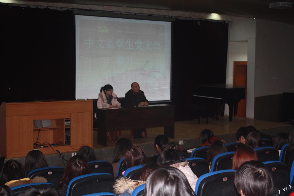 为了学习、贯彻党的十八大精神,落实《pp电子游戏平台网站关于学习贯彻十八大精神的通知》,12月12日晚上,中文系学生党支部在一号教学楼六楼报告厅组织学生党员集中学习十八大报告精神,学生第一党支部书记郝礼军、学生第二党支部书记沈菲、第一支部和第二支部的支委、学生党员、第7期发展对象、第34期入党积极分子共计200余人参加了会议。