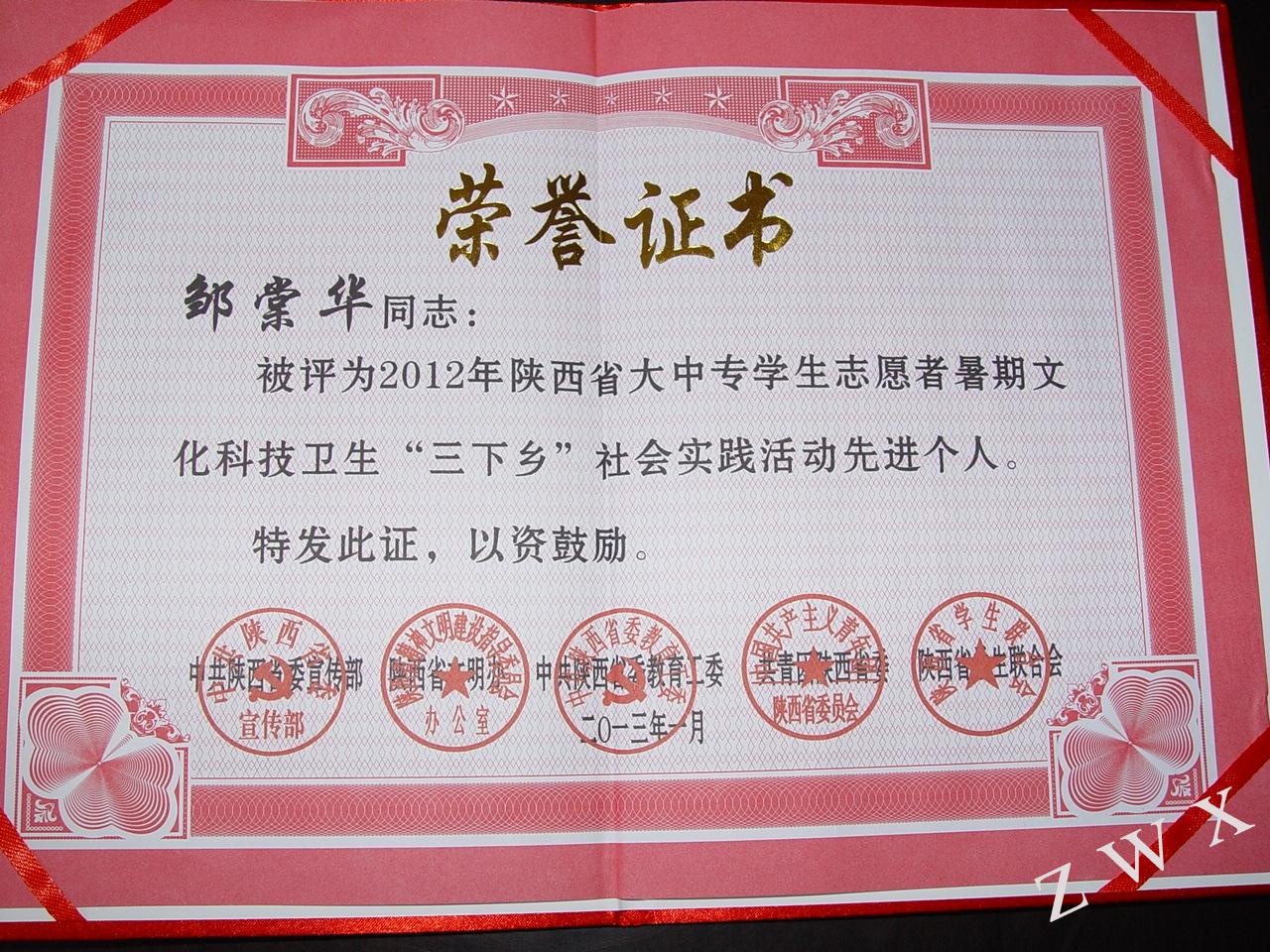 导航痕迹 首页 > 新闻通知 > 学院新闻 > 正文 学院新闻 通知公告 中文系大学生暑期“三下乡”社会实践服务队获省级表彰 发布人:zwx 发布日期:2013年03月11日 阅读次数: 2012年暑期,中文系团总支积极响应团委的号召,精心组织社会实践服务队,参加大学生文化科技“三下乡”社会实践活动,其中“小城镇建设与环境治理协调发展调研服务队”受到省委宣传部、省文明办、省教工委、团省委、省学联的联合表彰。指导老师邹棠华被评为暑期“三下乡”社会实践先进个人。 另外,我系学生的“大学生村官工作状况调查研究”和“安康地方小戏‘腊花戏’调查研究”两个创新项目近日也获得国家教育部“大学生创新创业训练计划”项目立项。