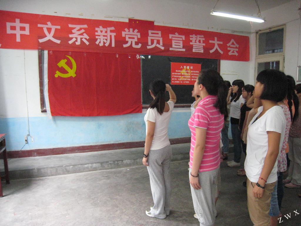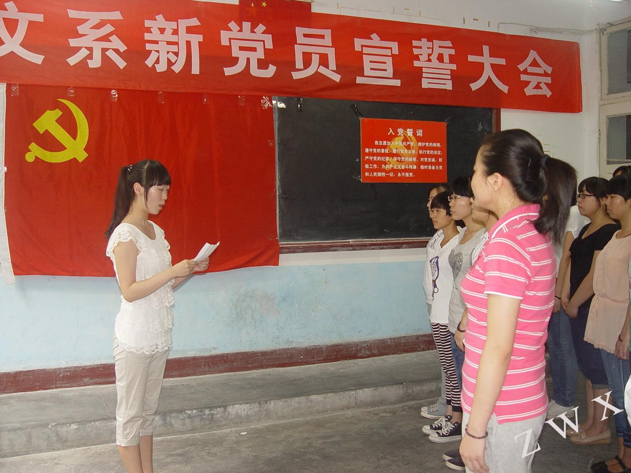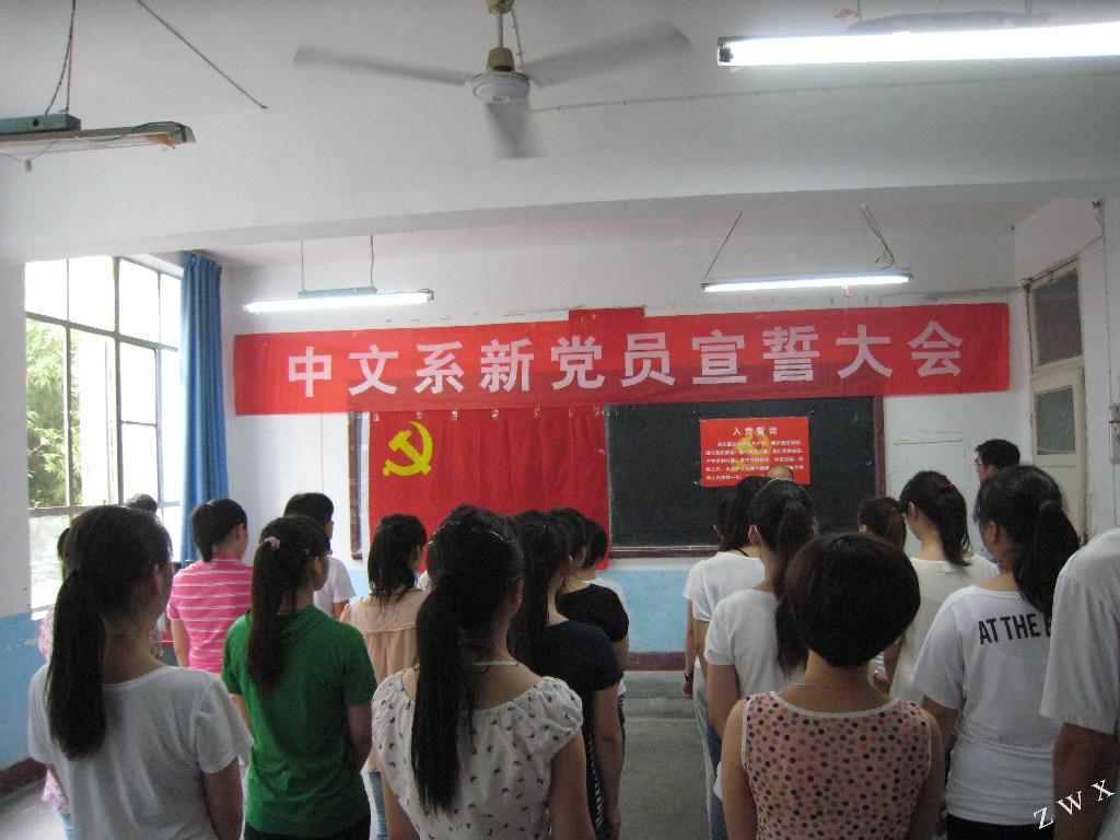 为庆祝中国共产党成立92周年,中文系学生党支部在“七一”前夕举行新党员入党宣誓大会。中文系党总支书记李岩、组织委员邹棠华、学生党支部书记郝礼军以及中文系新老党员等30余人参加了宣誓大会。仪式由郝礼军主持。