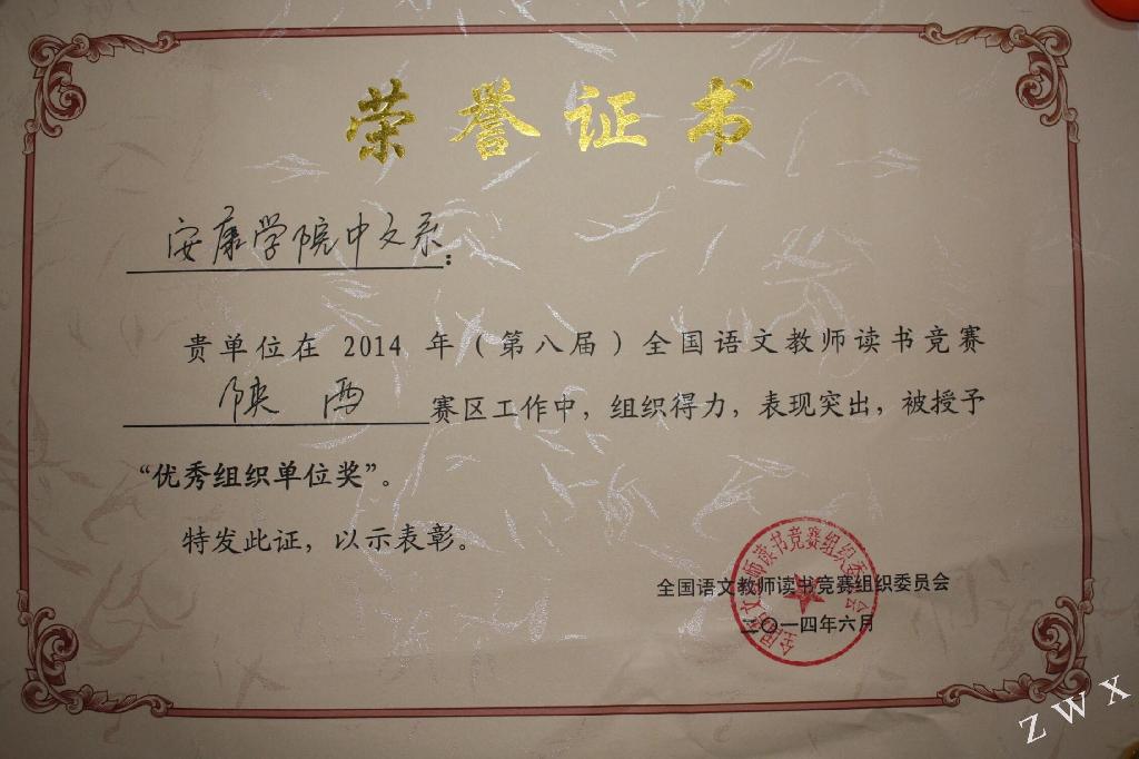 2014年(第八届)全国语文教师读书竞赛,由教育部中语司、教育部中国教育学会中学语文教学专业委员会、语文学习报社联合举办。本次大赛历时3个月,共有380余所高校的21万多大学生和全国1100余所中学的13万多中学生参加了本届竞赛,中文系516名本科生参加了高中组竞赛,经过认真组织和辅导,中文系共有107名学生获奖,其中百杰奖12人,一等奖18人,二等奖27人,三等奖50人。pp电子游戏平台网站中文系荣获优秀组织奖。