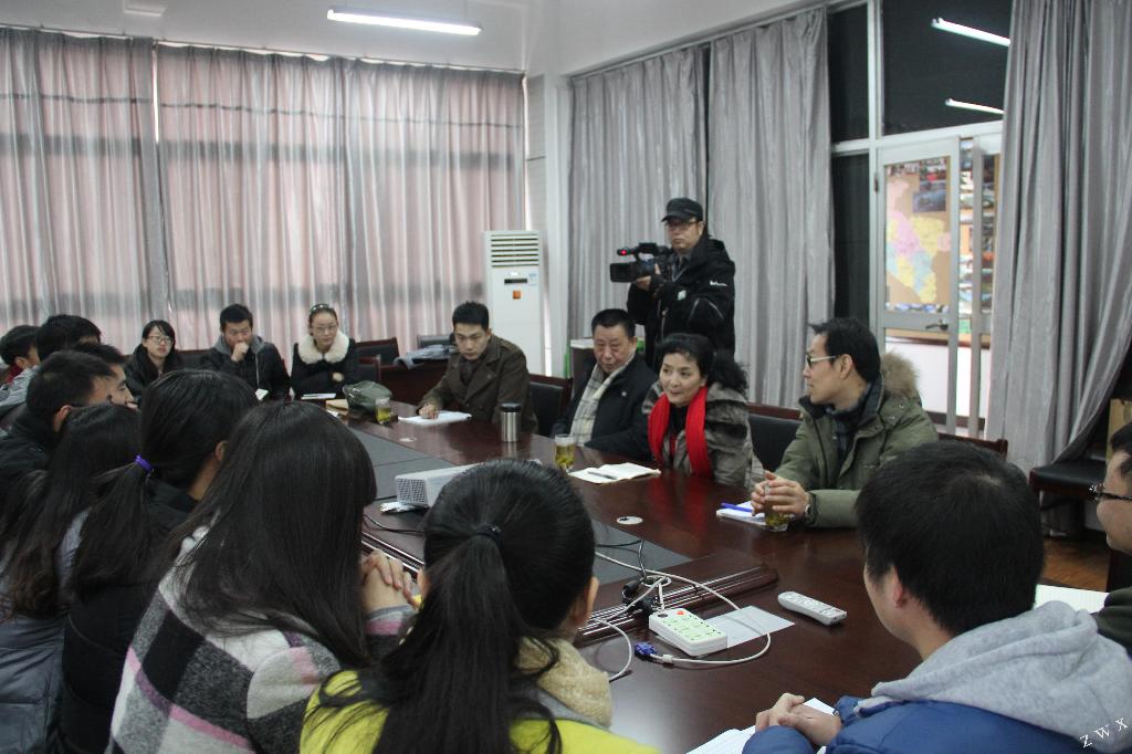 12月23日上午,中文系影视戏剧社学生与来自西安的省内艺术家欢聚一堂,在陕南民间文化研究中心会议室举行了座谈。应邀出席座谈会的艺术家有:梅花奖、文华奖获得者 、国家一级演员、省文联副主席、省剧协副主席刘远,全国诗歌朗诵协会理事 、话剧表演艺术家蒋瑞征,男高音歌唱家邵保国。中文系主任戴承元教授、系党总支书记李岩会见了各位艺术家并与他们进行了交流。座谈会由影视戏剧社指导老师邹棠华主持。