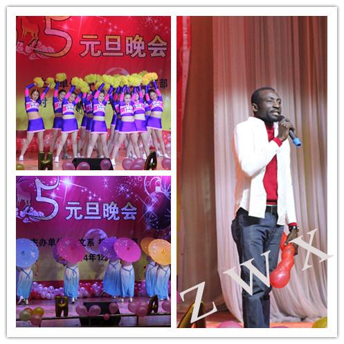 晚会在热闹、欢快的陕北民间歌舞中拉开帷幕。接着,优雅的华尔兹舞蹈、欢快的健美操、曼妙的古典舞蹈、劲爆的街舞轮滑、啦啦操次第登场。机关三支部余婕老师的一曲《知音》,引起观众对爱情的无限遐思;影视戏剧社的小品《退房》,再现了奋进的pp电子游戏平台网站人浓浓的师生情;留学生倪士杰的新年祝福,表达了喀麦隆学生对中国的无限情怀;第五龙龙等人的诗歌朗诵《我的南方和北方》,激起了大家对伟大祖国的深深眷恋;“太极与双节棍”动与静的美妙组合,更是展示了中华武术的博大精深;史超凡、赵莎的英文歌舞,劲爆火辣;梁启超组合的自编歌曲,激情飞扬。整台晚会,高潮迭起,掌声、笑声、欢呼声不断,突出了“热闹祥和、青春激扬”的主题。