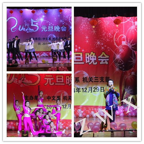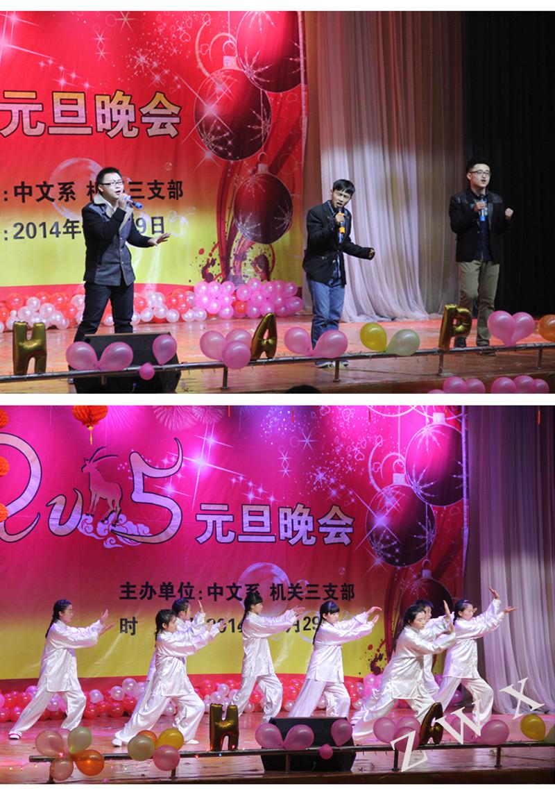 12月29日晚,中文系与机关三党支部在江南校区联合举办元旦晚会。校学工部部长郑树青,中文系主任戴承元、党总支书记李岩,校保卫处副处长张文华、王开忠,校团委副书记肖红香,中文系副主任梁卫华、杨运庚及中文系800余名师生一起观看了演出。