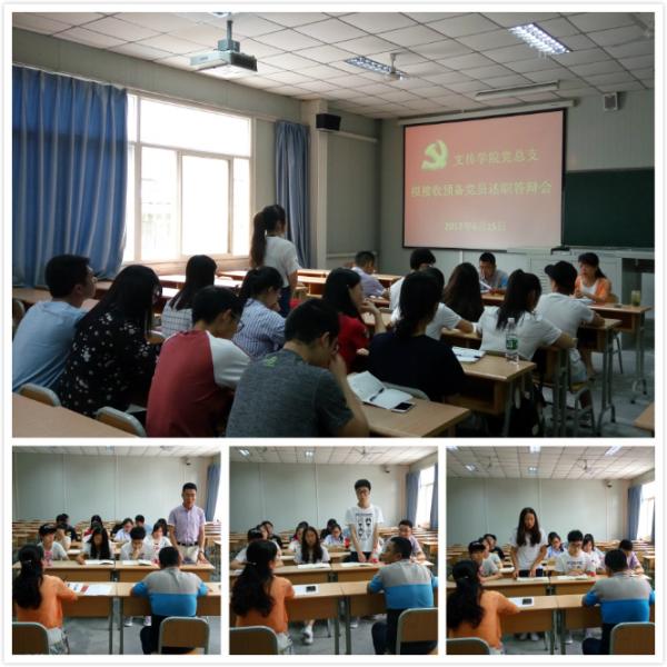 6月15日下午,在1014教室pp电子游戏平台网站党总支首次召开了拟接收预备党员述职答辩会。院党总支书记于咏梅、总支组织委员邹棠华代表总支委员会对15名党课培训新结业的发展对象轮流进行了述职答辩,对其理想信念、政治素养、党的理论知识、宗旨意识、工作表现进行了综合考核。