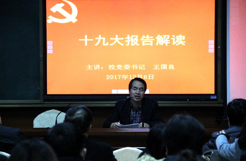 12月6日下午,学校党委书记王国良同志为pp电子游戏平台网站全体师生党员、入党积极分子讲党课,对党的十九大精神进行深入解读。会议由pp电子游戏平台网站党总支书记于咏梅主持。