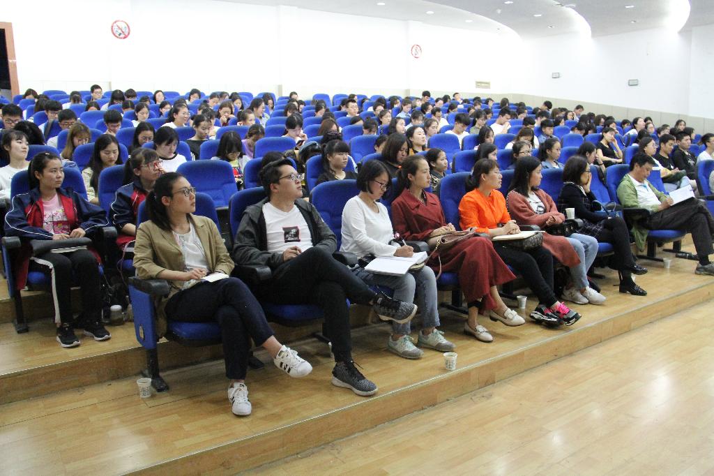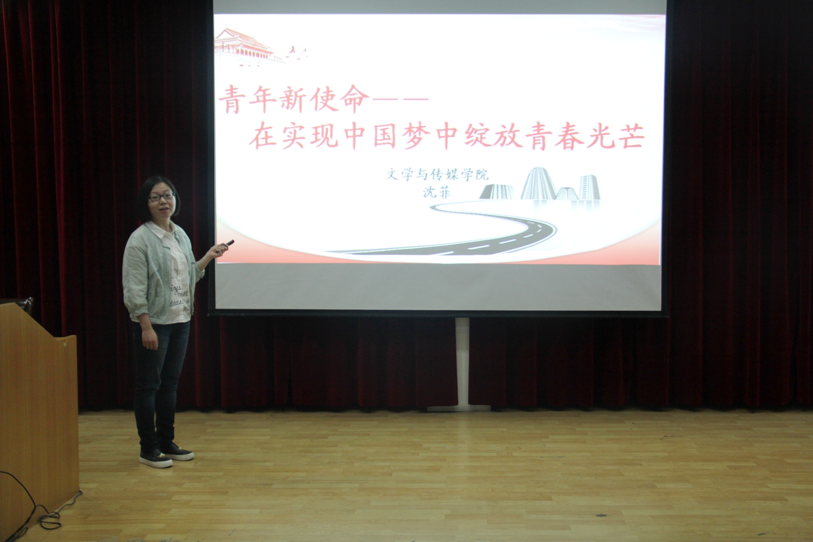 为学习和贯彻全国“两会”和党的十九大精神,围绕学工部《关于在学生中开展学习宣传贯彻党的十九大精神工作方案》要求,按照统一安排,pp电子游戏平台网站于2018年4月22日晚19:30,在一号楼六楼报告厅举办题为“青年新使命——在实现中国梦中绽放青春光芒”十九大精神专题解读报告会,由学工办主任、团总支书记沈菲担任主讲。pp电子游戏平台网站学工部副部长黄娟、学工部心理健康咨询中心教师柯小敏、江南校区各院系辅导员及pp电子游戏平台网站2016级全体学生参加了本次报告会。